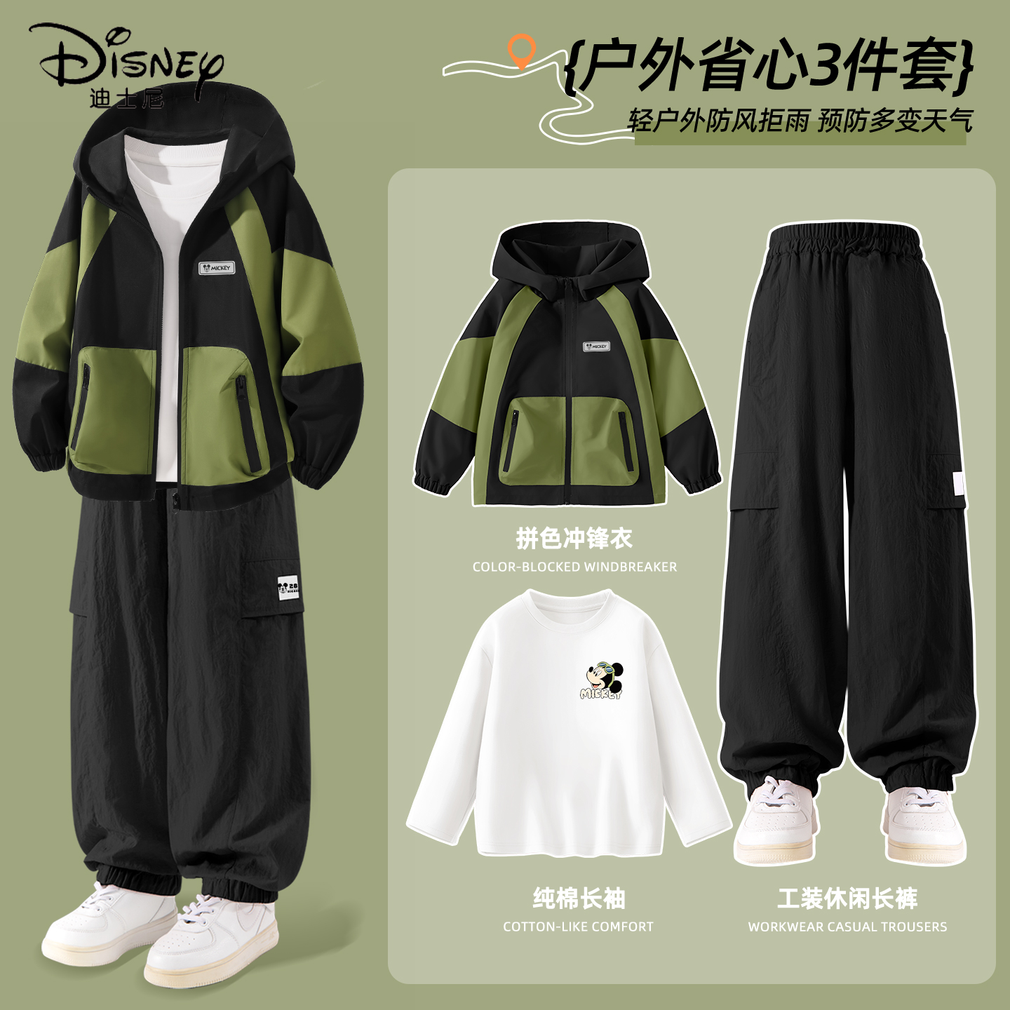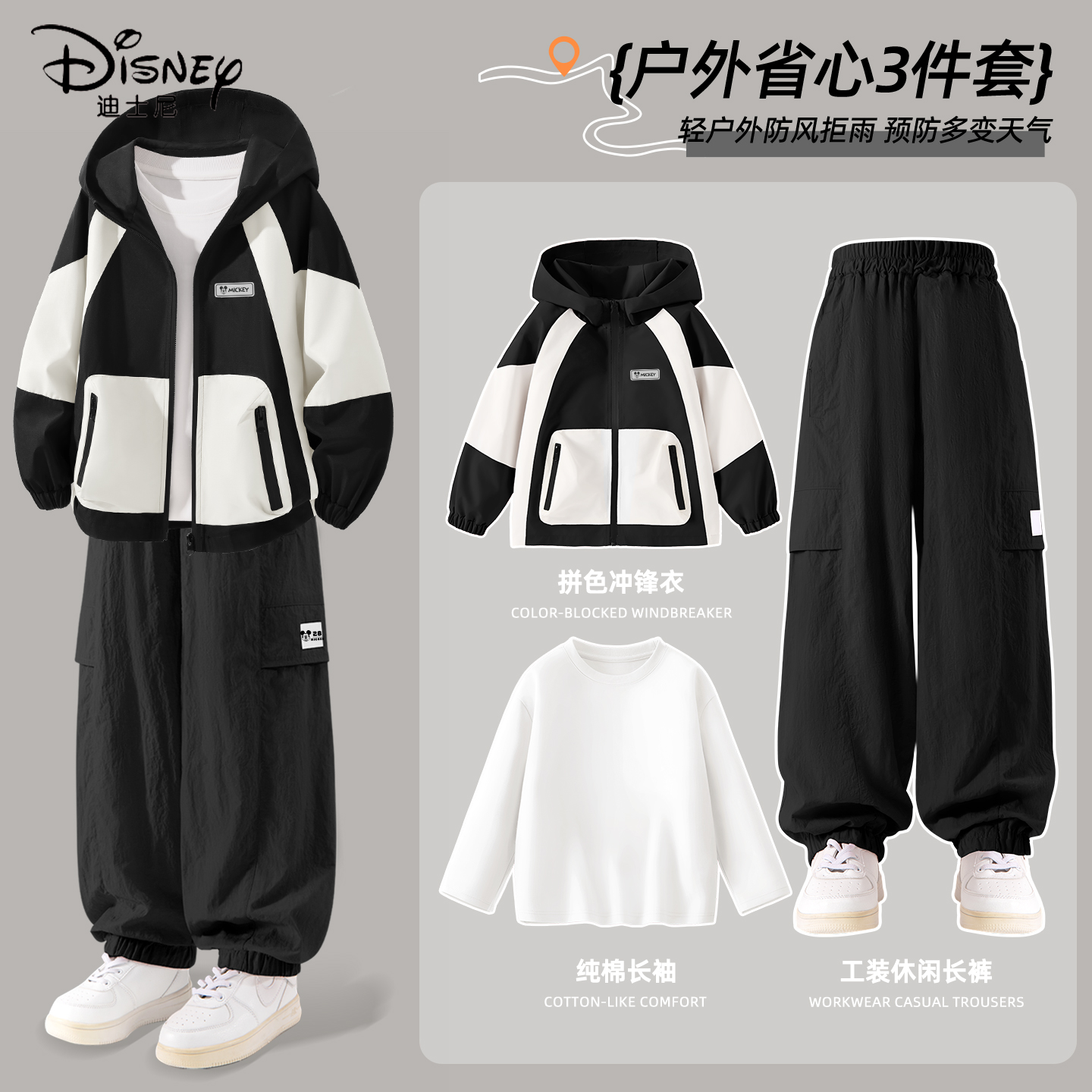 春秋款 裤 2025新款 户外冲锋外套休闲儿童秋装 子 童装 迪士尼男童套装