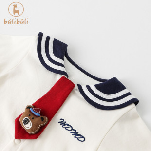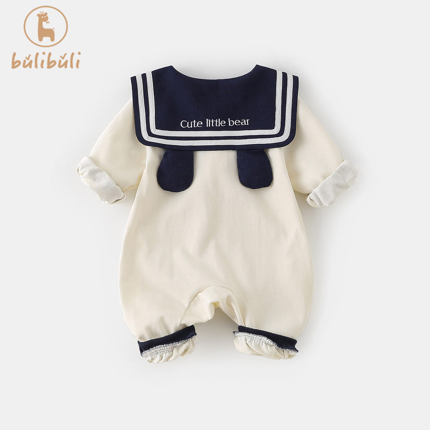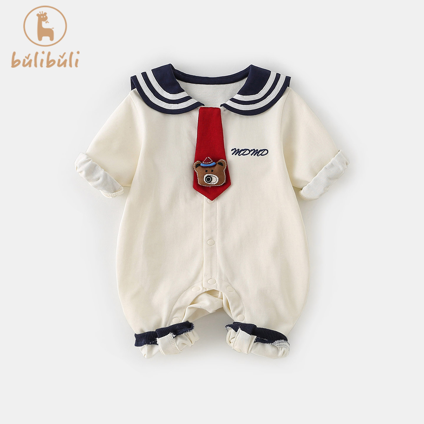 婴儿衣服秋装 爬服 男女宝宝海军风连体衣可爱洋气满月百天哈衣秋季