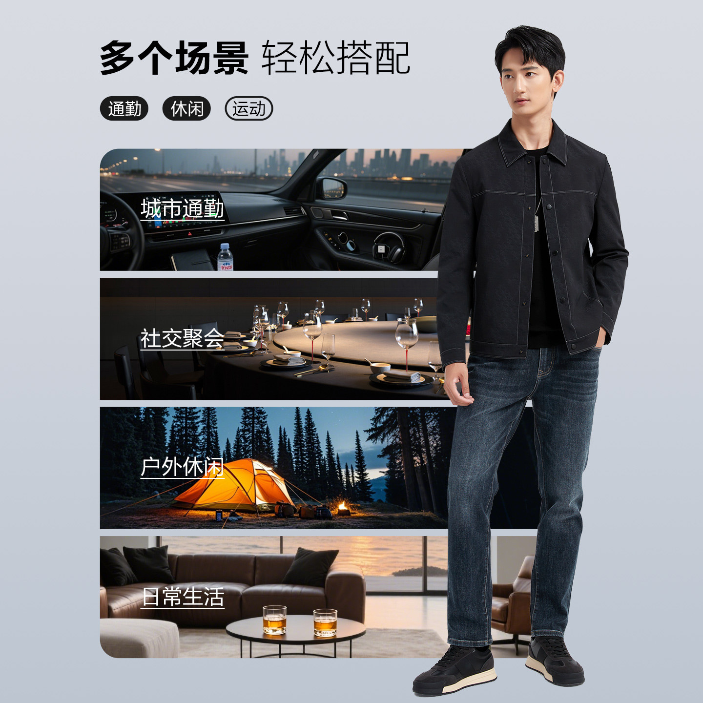 双面穿夹克男士 新款 罗蒙2025秋季 可拆卸帽商务外套 祁厅长同款