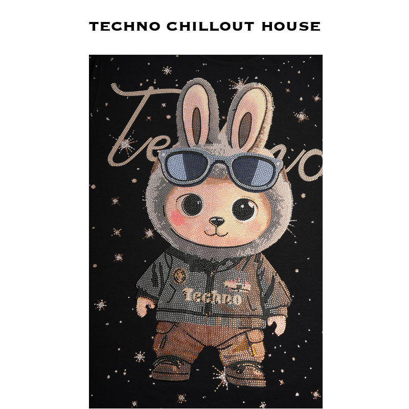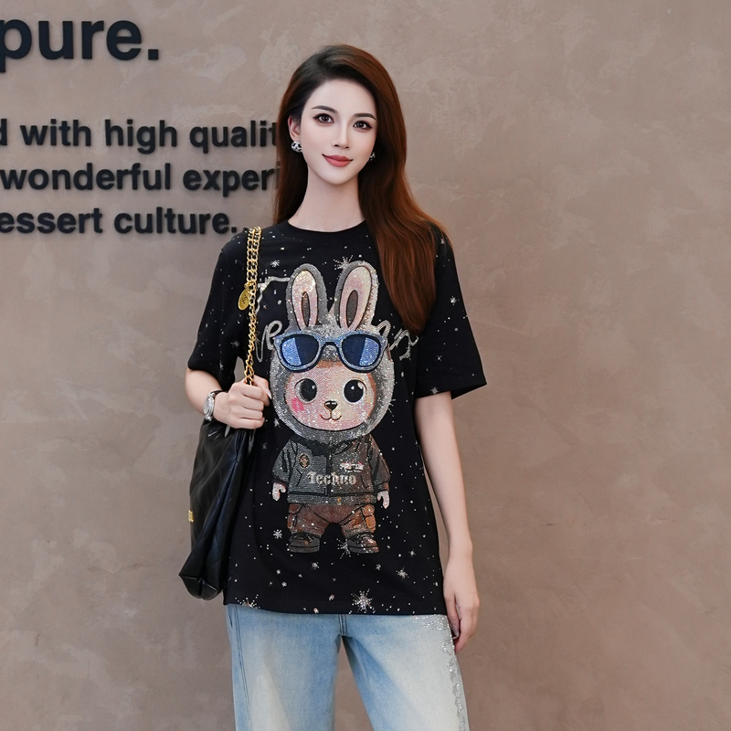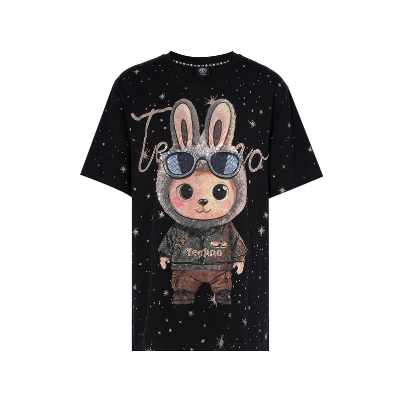 TCH潮牌重工卡通满天星烫钻个性 T恤T75C10E9046 百搭宽松休闲短袖