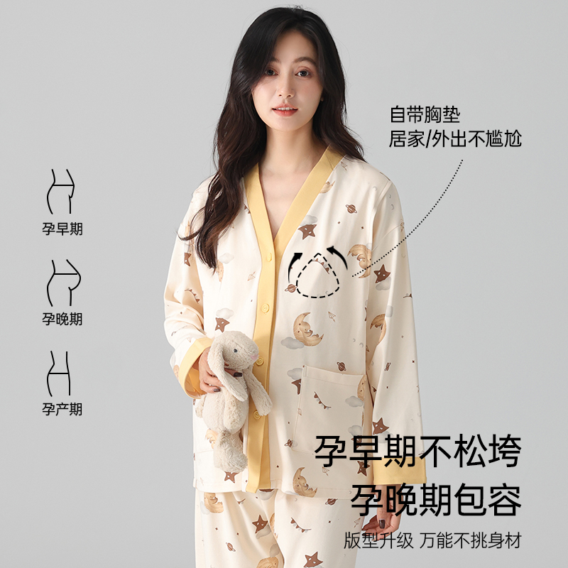 南极人纯棉月子服女春秋天孕妇睡衣孕期产后产妇哺乳带胸垫家居服