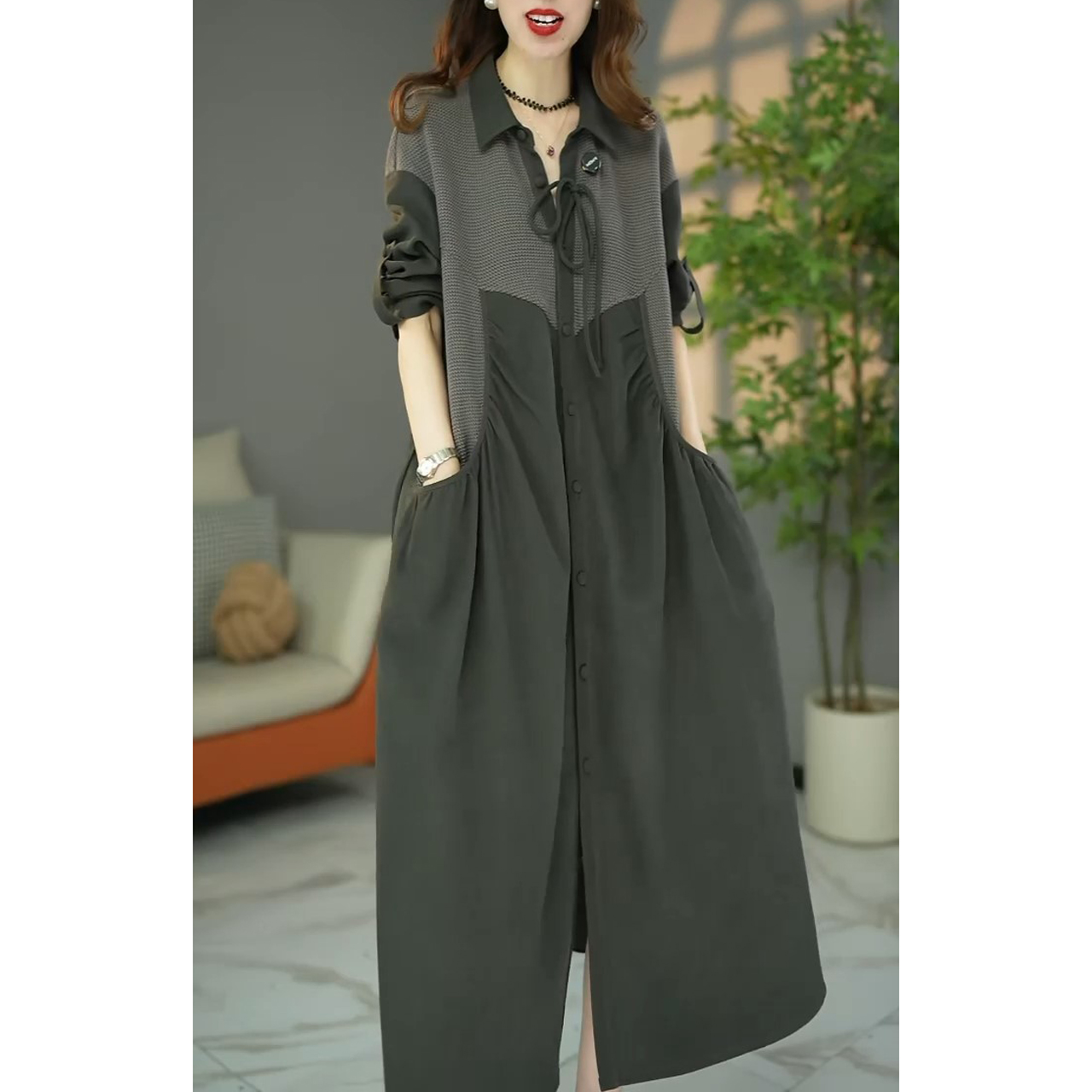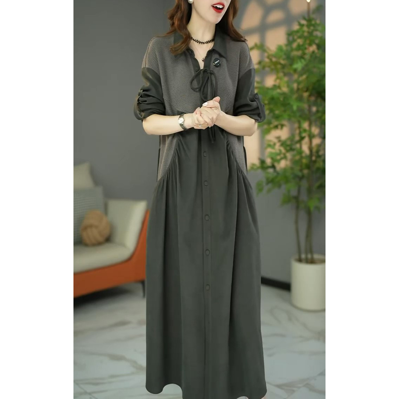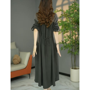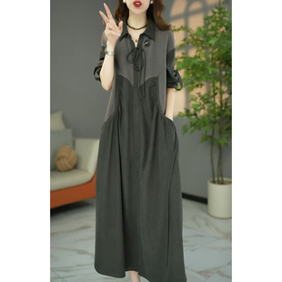连衣裙女时尚 秋季 宽松显瘦中长款 大码 气质休闲百搭设计感裙子 新款