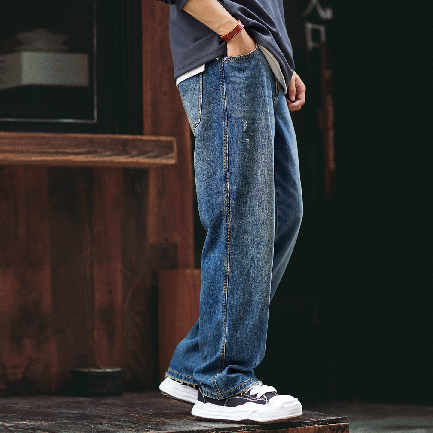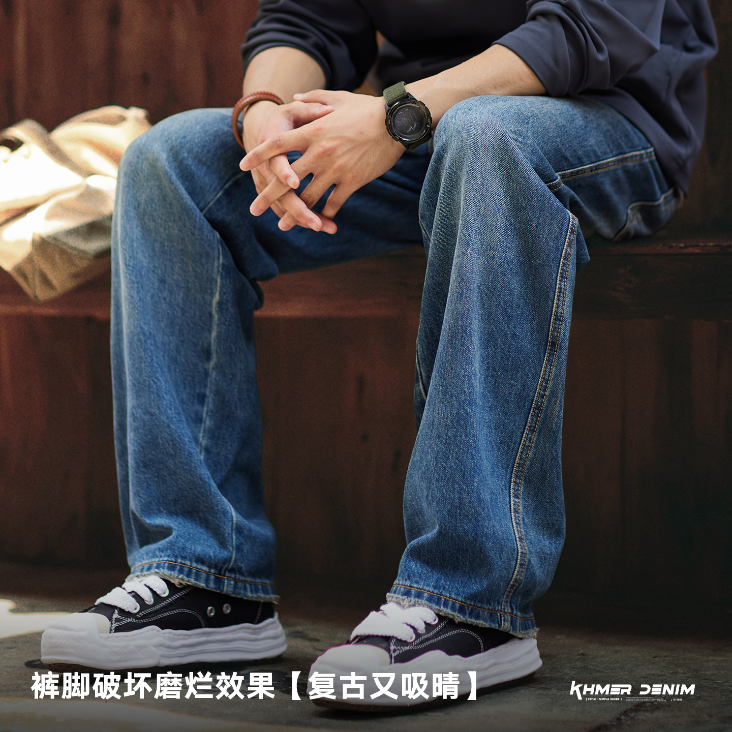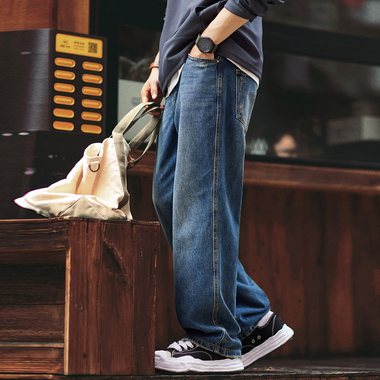 简约百搭裤 快鱼美式 宽松舒适直筒裤 男2025年秋新款 子 复古蓝牛仔裤