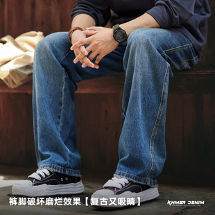 宽松cleanfit阔腿弯刀裤 男春秋新款 子 复古直筒牛仔裤 马克华菲美式