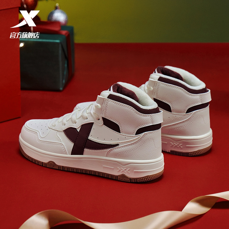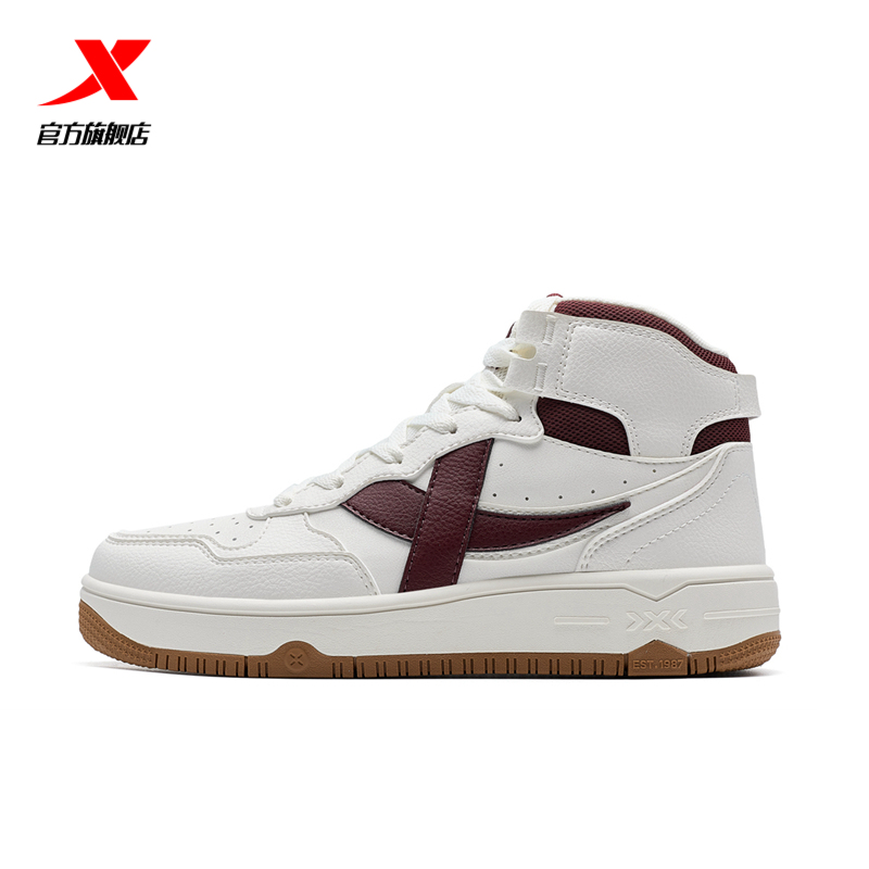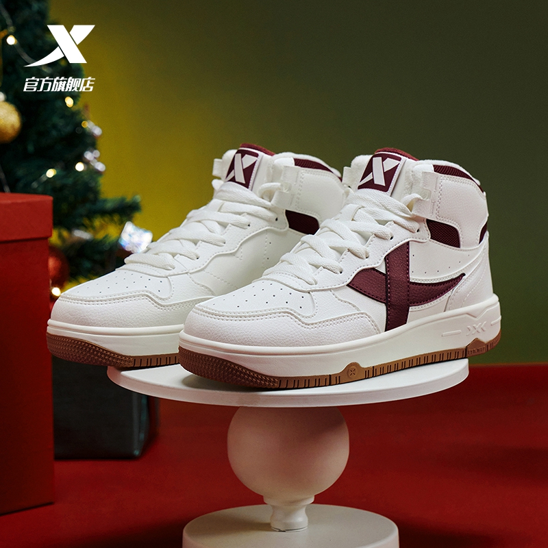 女厚底增高鞋 特步苜白3情侣板鞋 小白鞋 高帮休闲鞋 子 2025秋冬新款