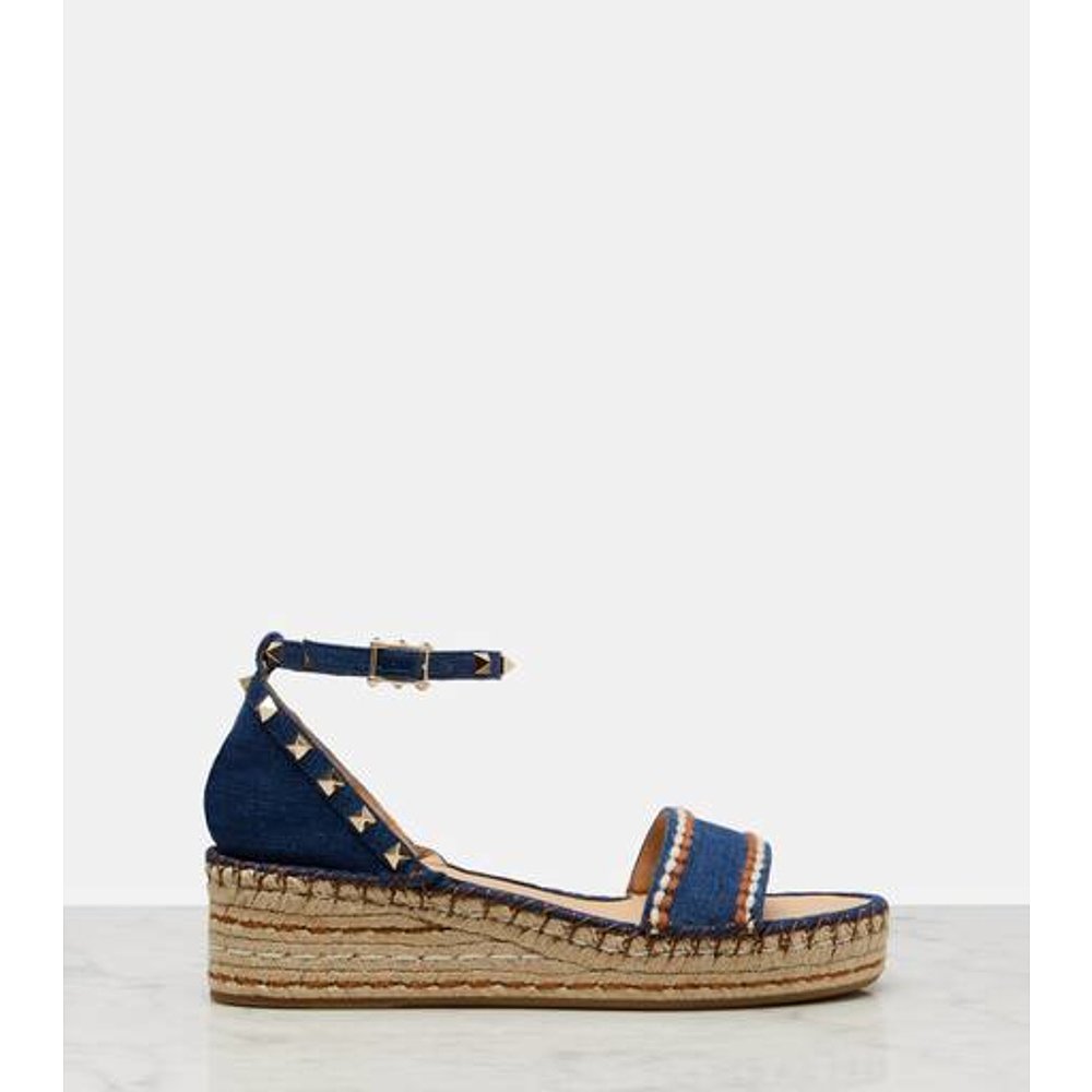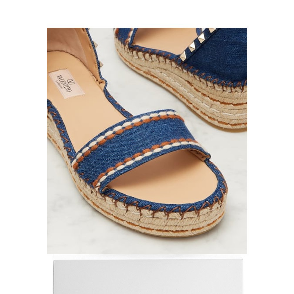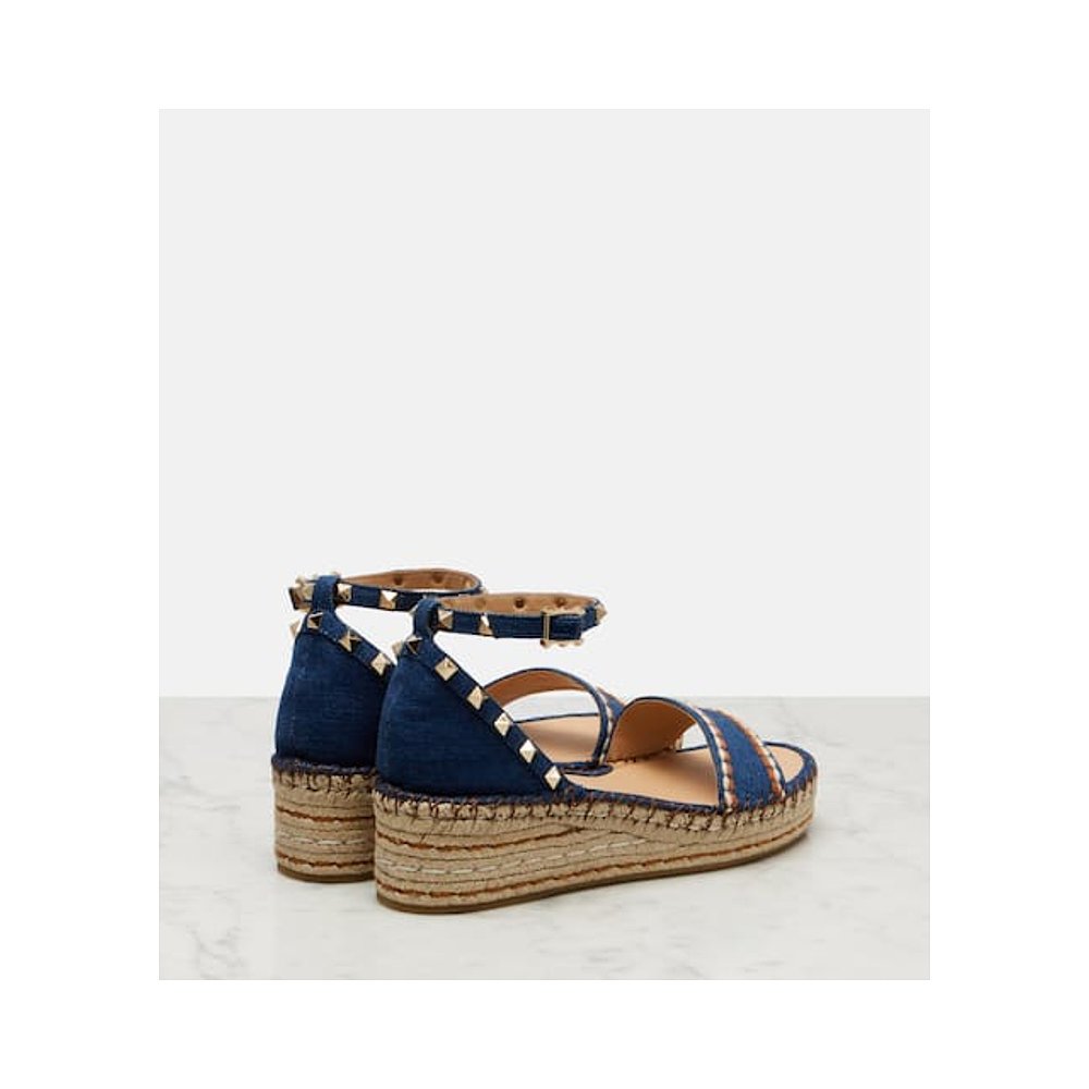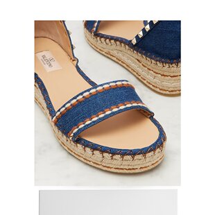 潮奢 铆钉双牛仔布麻底凉鞋 Valentino 女士 华伦天奴 1h可退