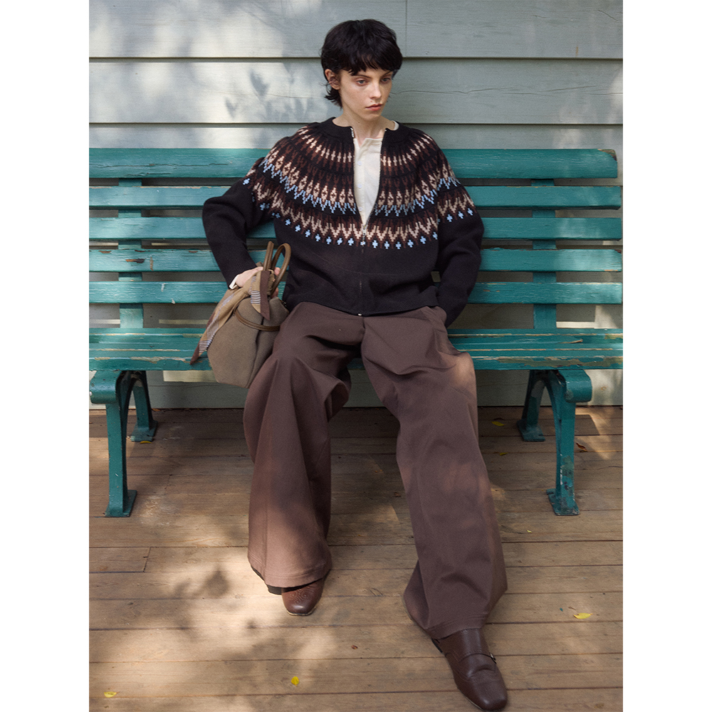 外套 针织衫 DIMC女装 莫代尔混纺弧形费尔岛提花拉链毛衣通勤风长袖
