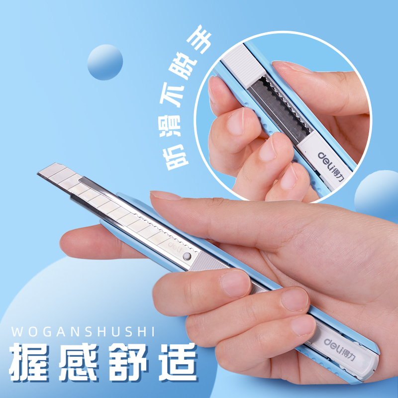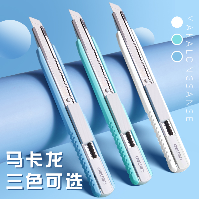 得力2086美工刀小刀简约马卡龙学生美术课刻刀不锈钢快递刀开箱壁纸刀手工刀家用办公开箱裁纸刀刀片美工