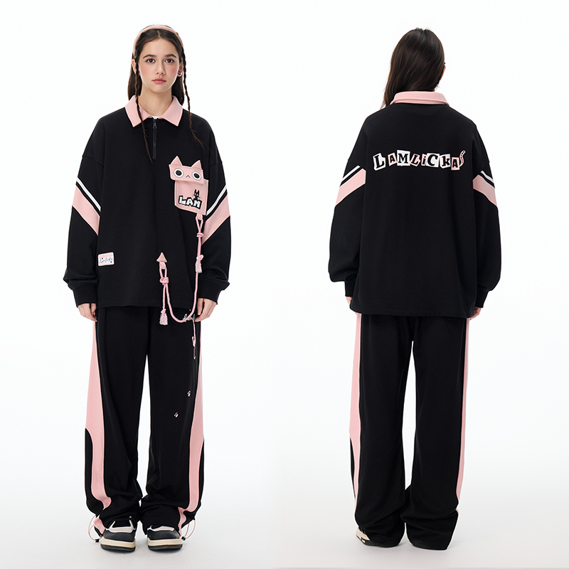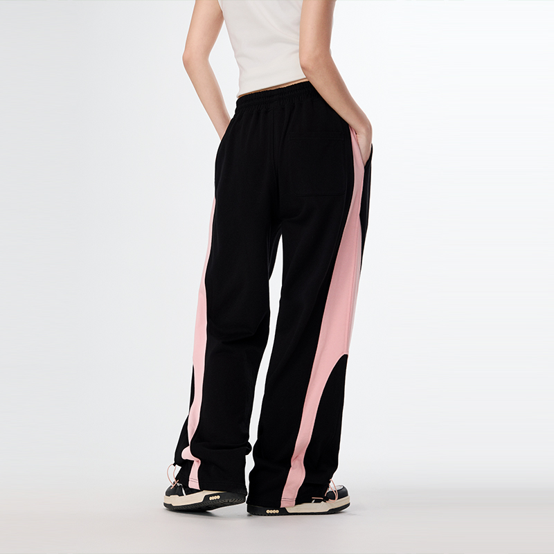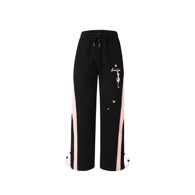 阔腿宽松垂感长裤 LAMLICKA潮牌黑色拼接直筒休闲裤 男秋冬加厚美式