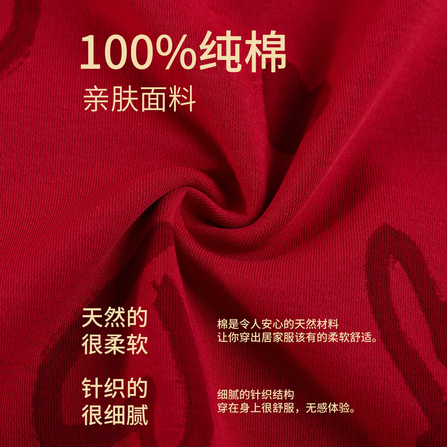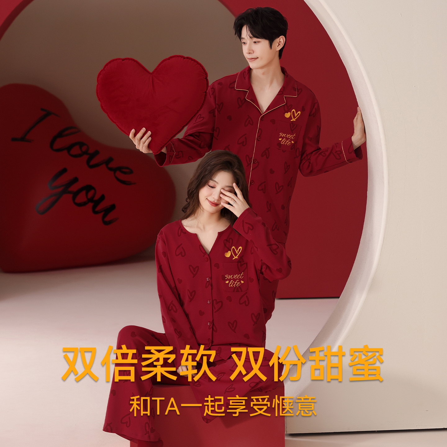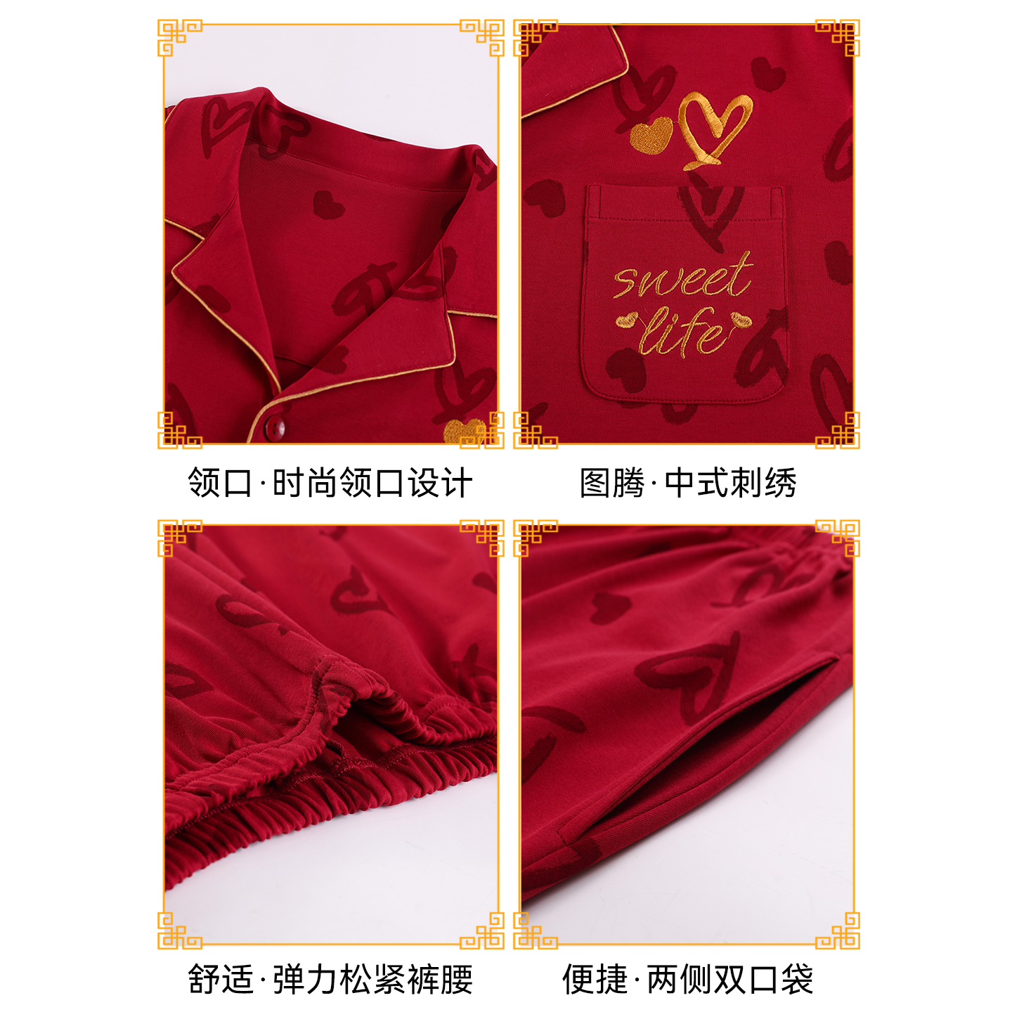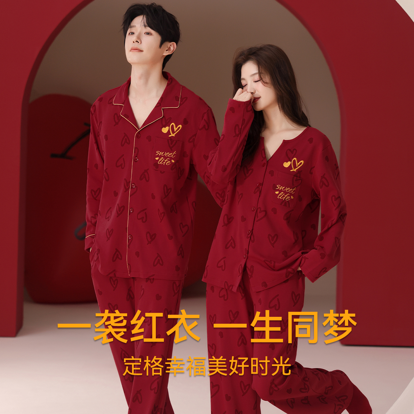 都市丽人2025新款 结婚新婚情侣睡衣女纯棉春秋红色喜庆家居服套装