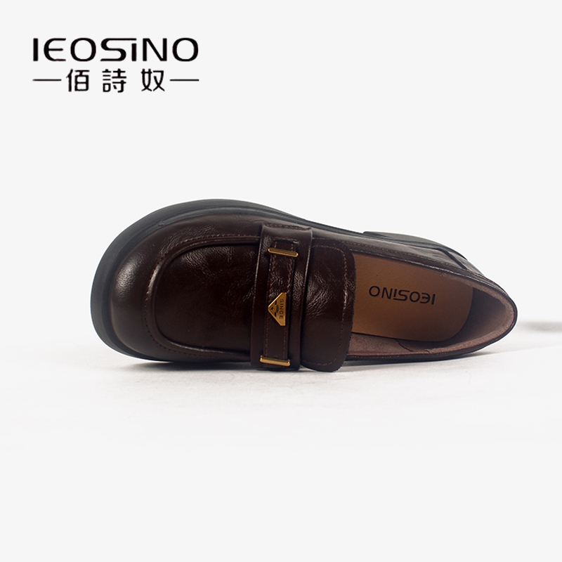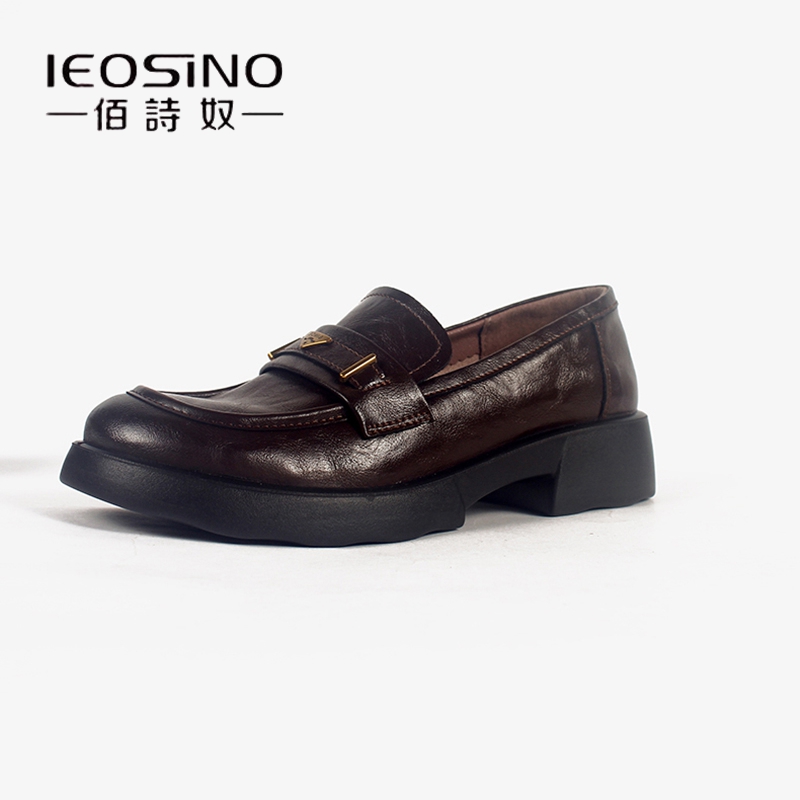 女 真皮复古不累脚百搭粗跟英伦舒适厚底乐福鞋 佰诗奴2025秋季 新款