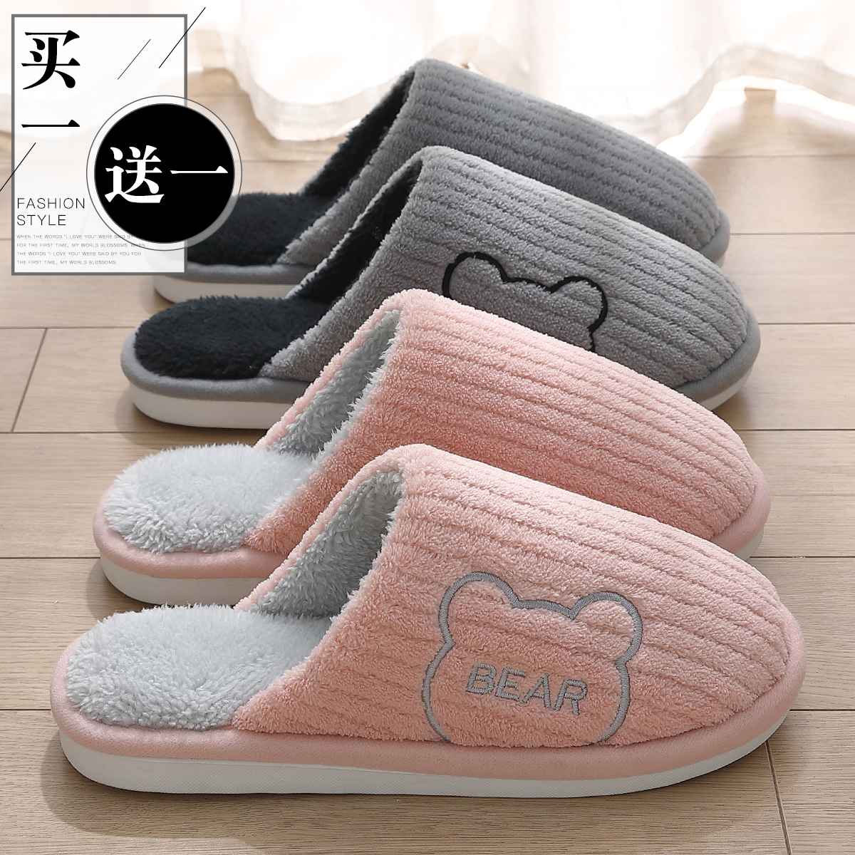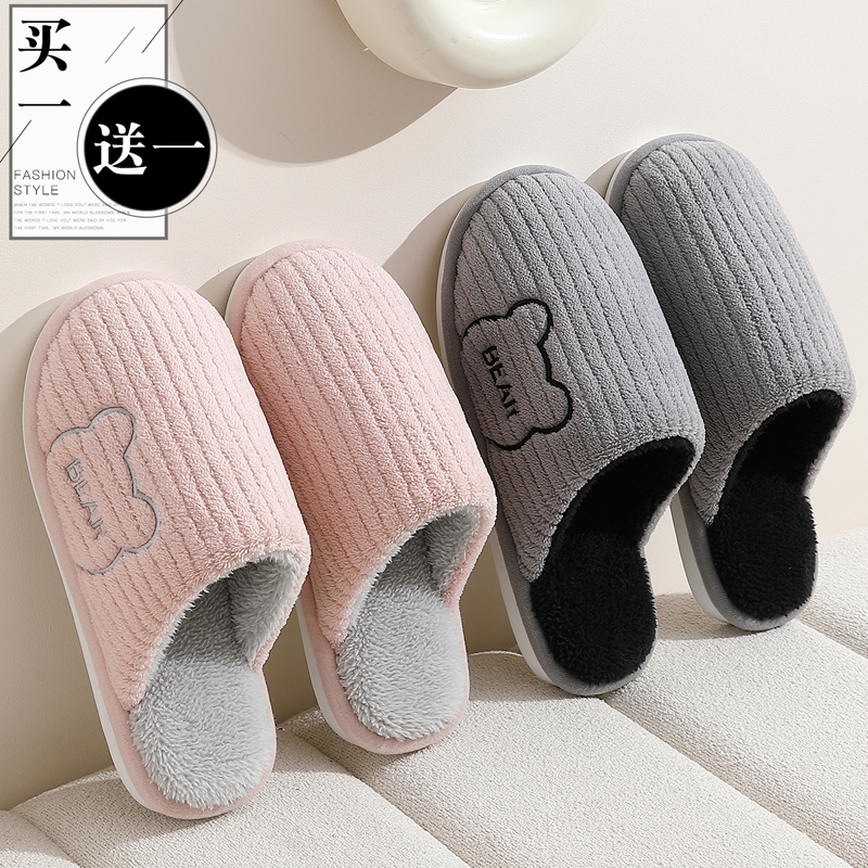 防滑保暖棉拖男式 秋冬室内家居情侣一对2025新款 女款 买1送1棉拖鞋