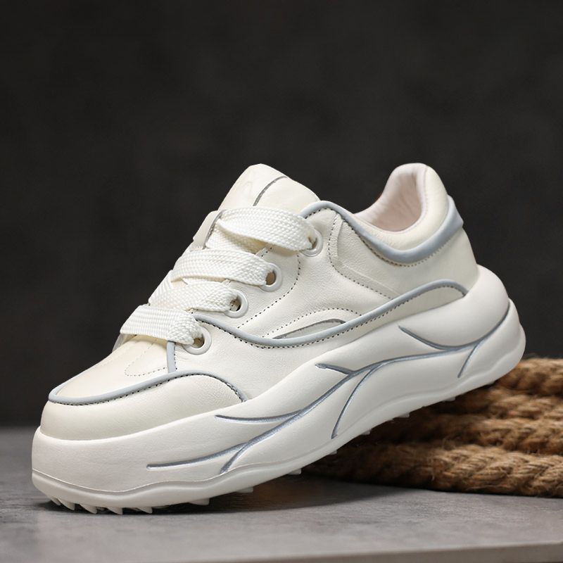 靴子 真皮防水厚底增高工装 森马马丁靴男秋季 高帮百搭休闲白色板鞋