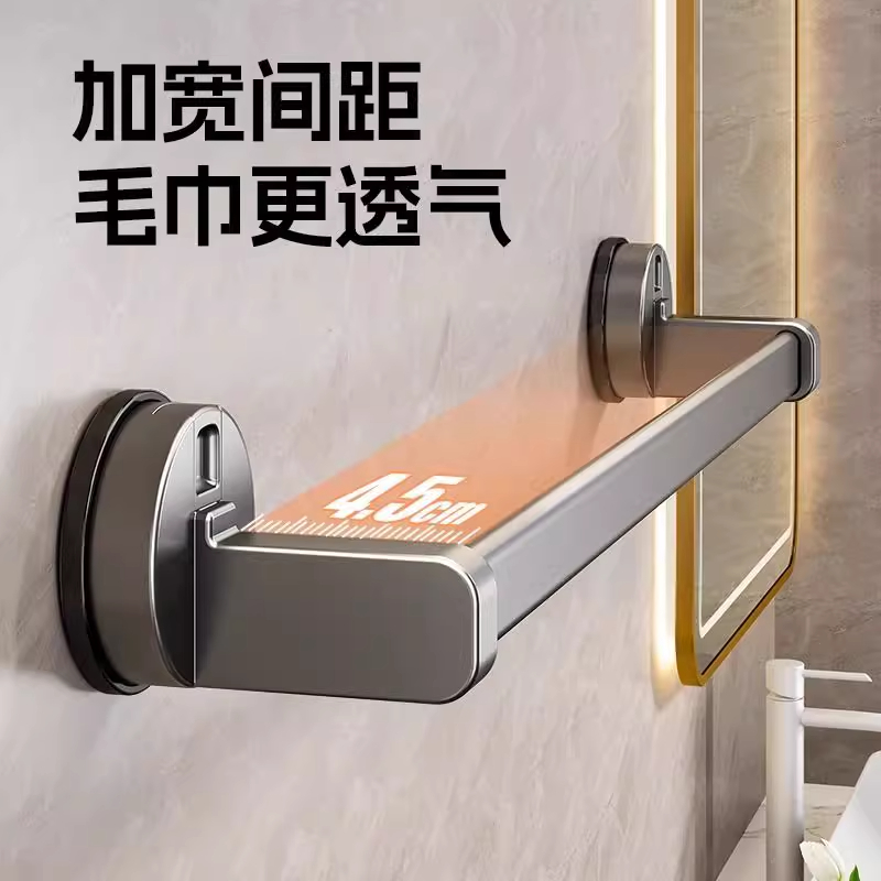 吸盘卫生间毛巾架免打孔置物架浴室伸缩毛巾杆洗手间浴巾收纳挂架