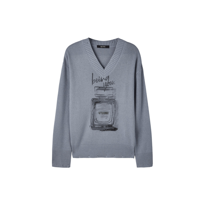 新款 尤缇2025秋季 TI慵懒系香水毛衣女设计感提花绵羊毛套头毛衫