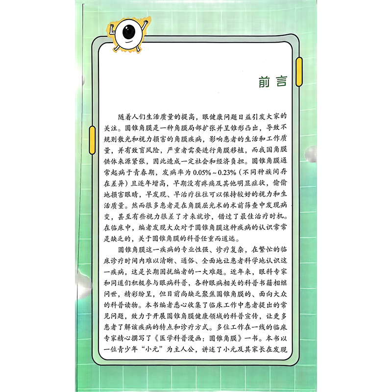 涵盖了圆锥角膜 发病原因 症状 医学科普漫画 人民卫生出版 黄锦海主编 诊断和治疗以及日常注意事项等 社 圆锥角膜