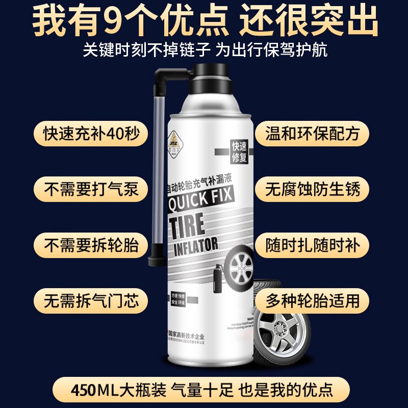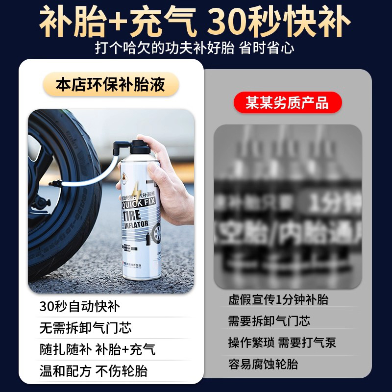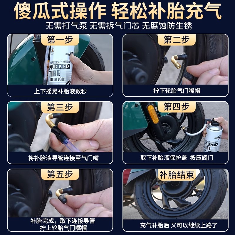电动摩托车自行车快速补胎液电瓶真空胎轮胎专用应急充气修复神器
