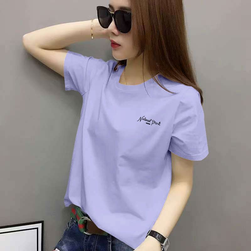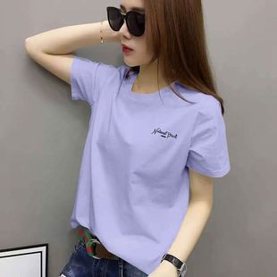 新款 圆领休闲T恤女时尚 洋气百搭宽松显瘦上衣潮 100%纯棉短袖 夏季