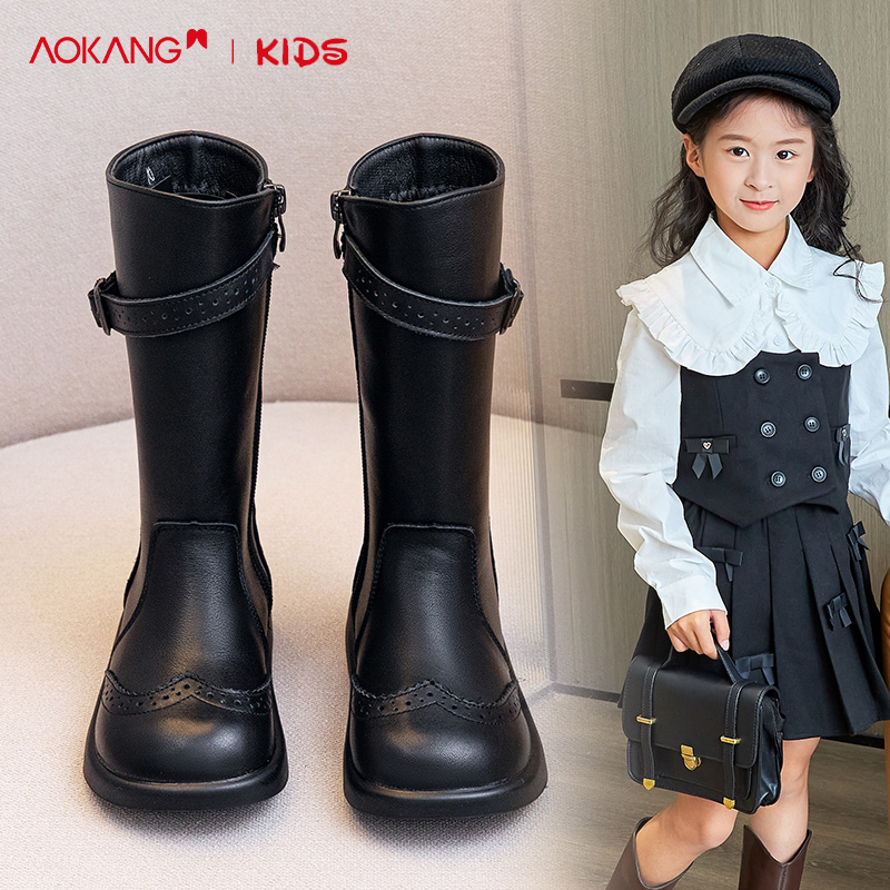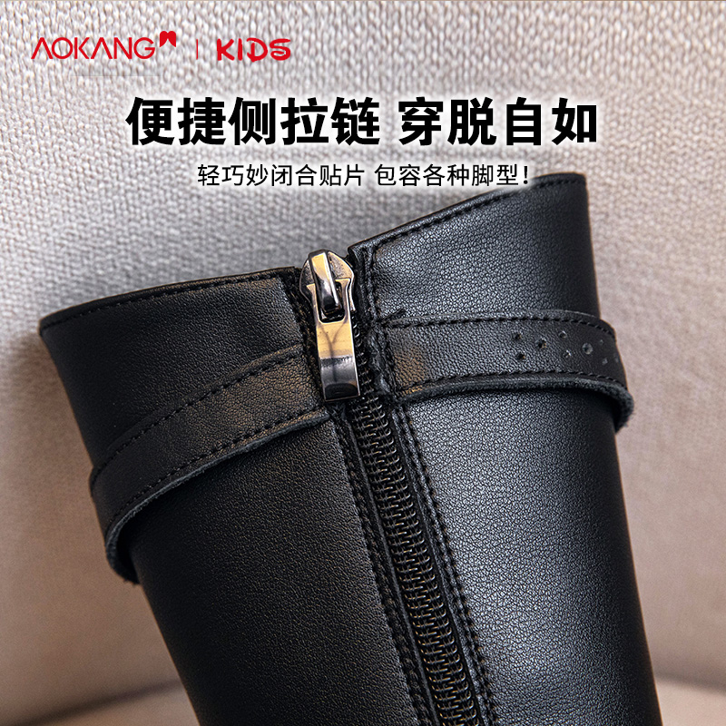 奥康儿童靴子女童高筒靴加绒长筒靴保暖公主靴皮靴女宝真皮马丁靴