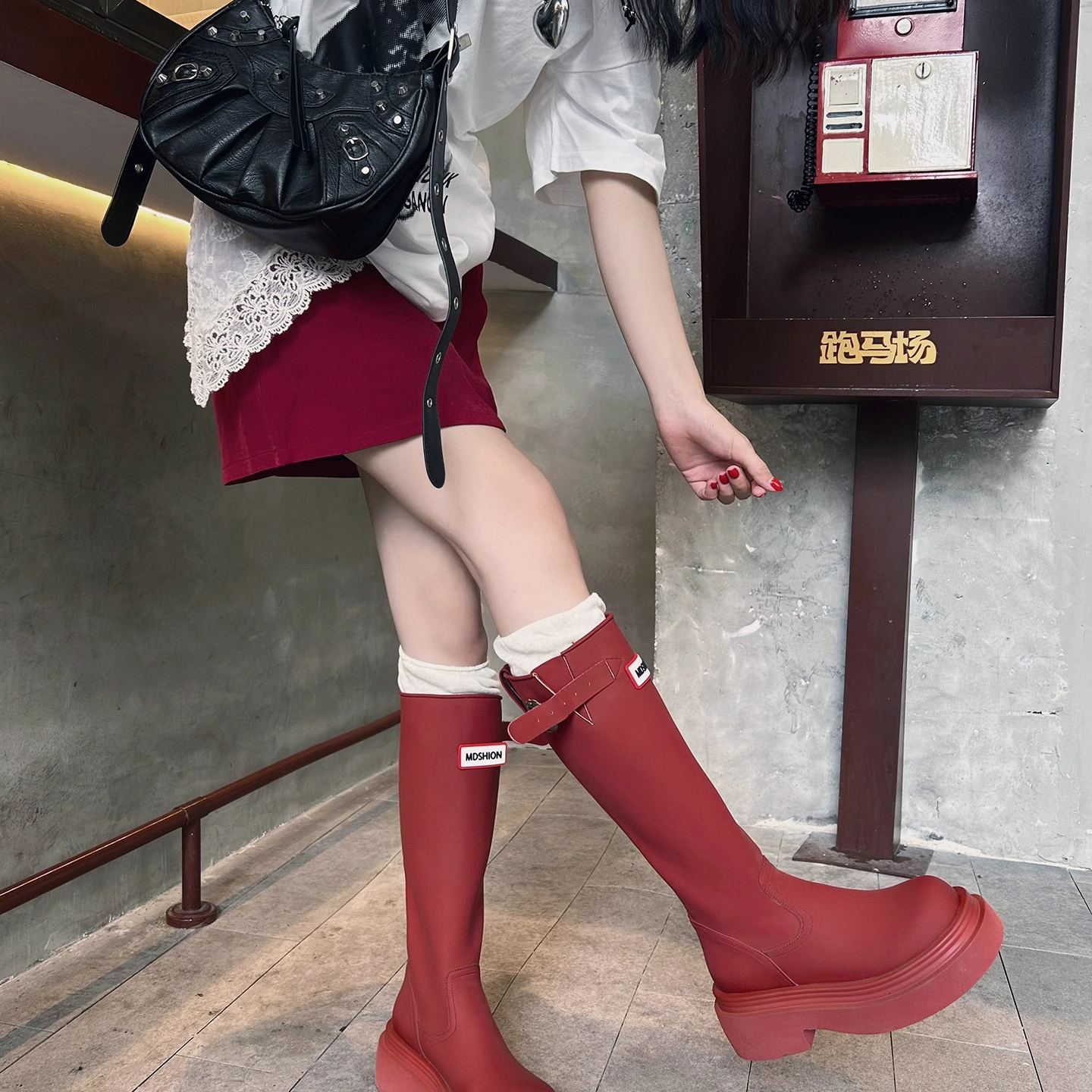 厚底防滑高筒红色雨靴子2025户外露营雨鞋 不过膝旅游长筒靴骑士靴