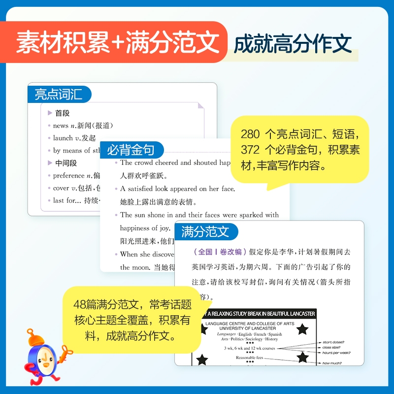 星火英语作文高中英语随身记2026新高考素材大全万能模板2025高一二高三便携口袋书满分读后续写高分范文写作专项训练掌中宝词汇