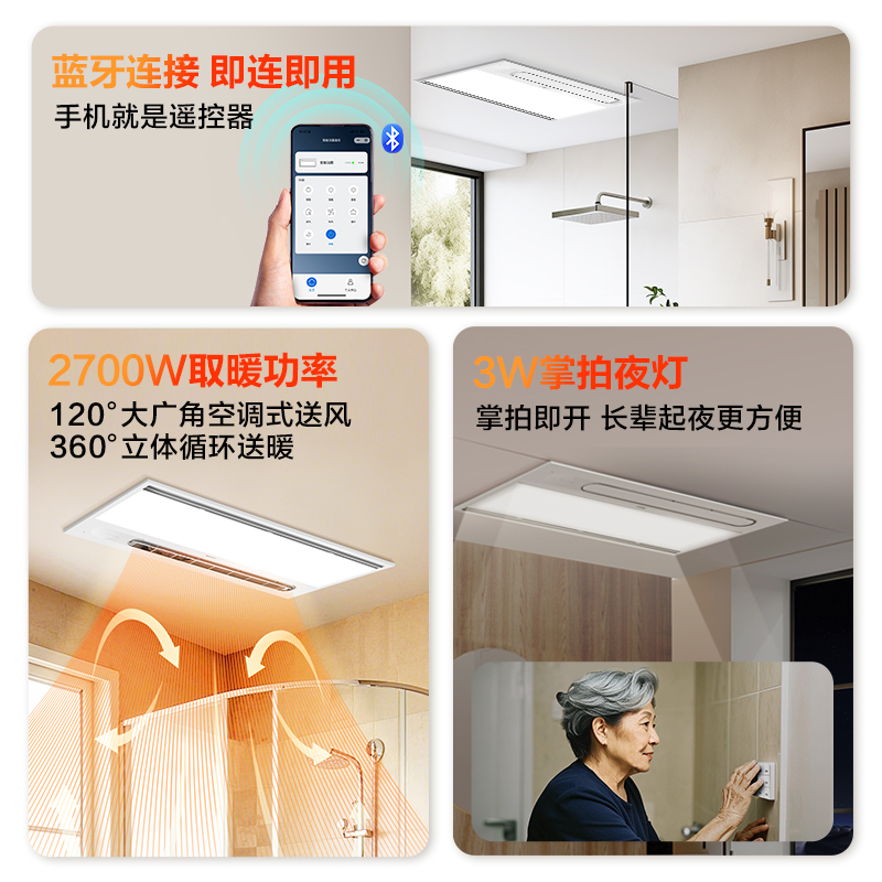 海尔浴霸K3S 纯平无缝嵌入平嵌家用多功能五合一照明双控2700功率