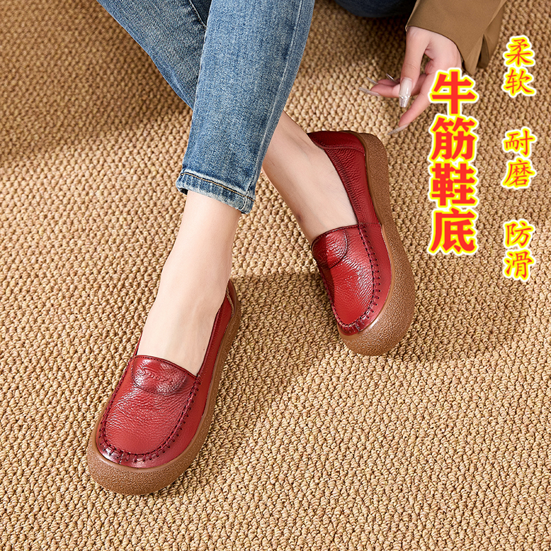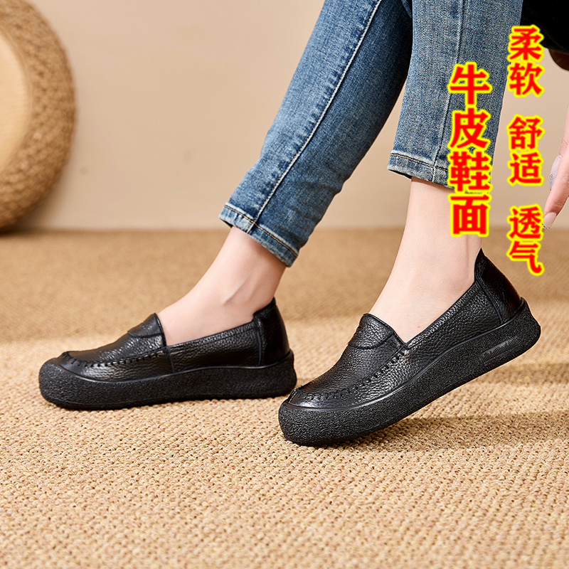 真皮软底妈妈鞋 女牛筋底软面不累脚一脚蹬舒适孕妇防滑软底工作鞋