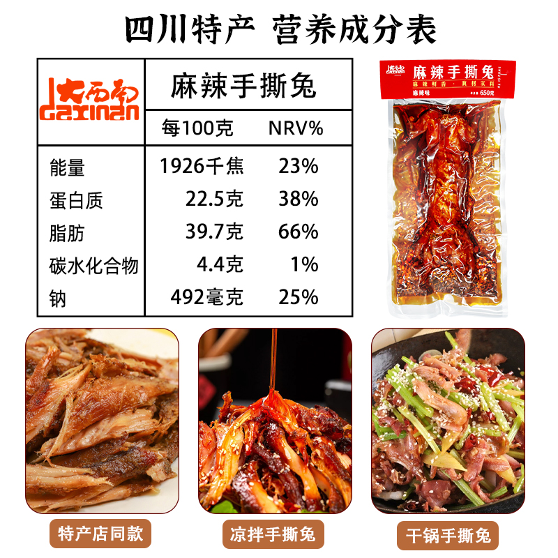 长明自贡冷吃兔四川特产无骨五香兔丁250g麻辣带骨兔肉干零食即食