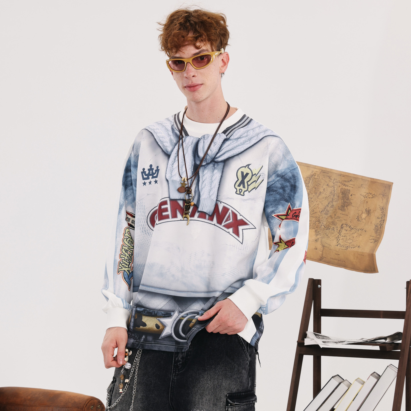 三福2025秋冬新款 卫衣男斑驳大字母印花带帽套头宽松外套507926