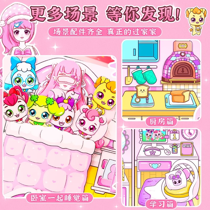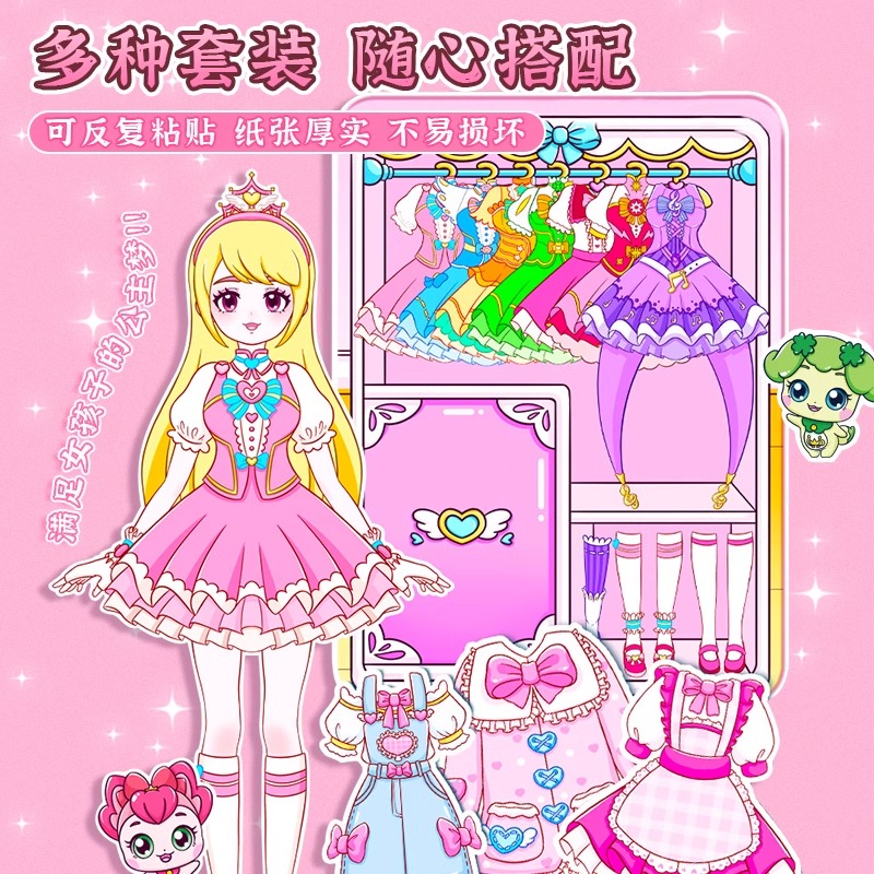 贴纸画换装 书可爱卡通少女心手工diy玩具免裁剪迷你换装 豆豆本子 饰小图案颜值高换装 小麻薯贴纸书女孩儿童装