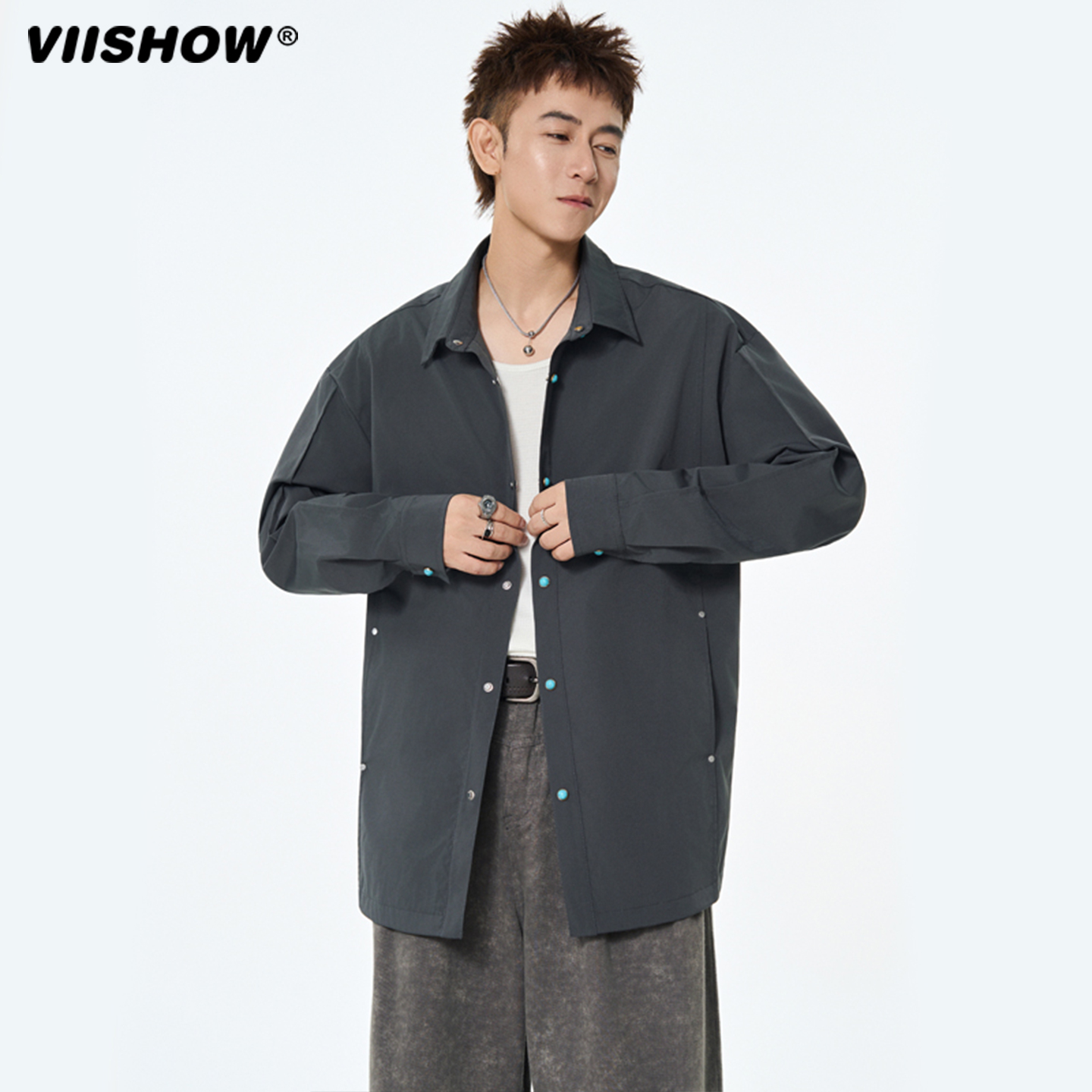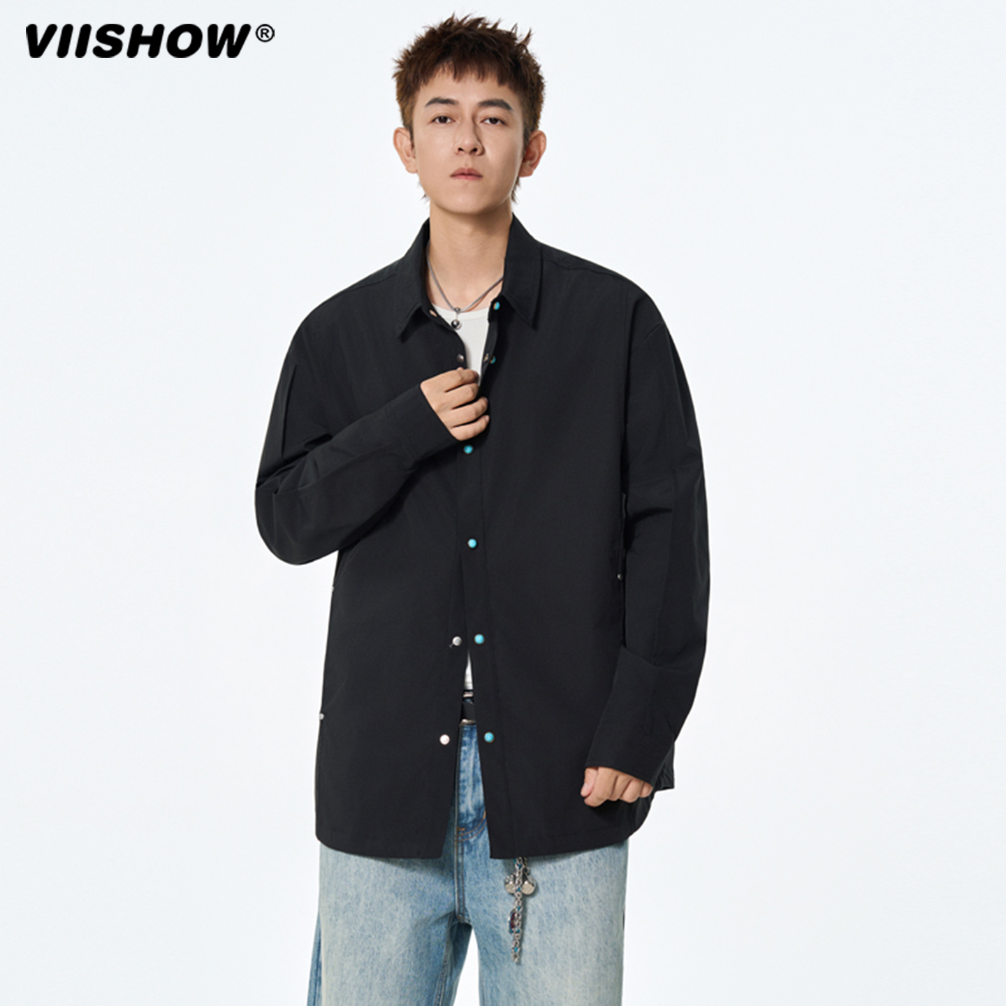VIISHOW日系复古简约纯色长袖 男女潮牌宽松情侣休闲百搭衬衣 衬衫