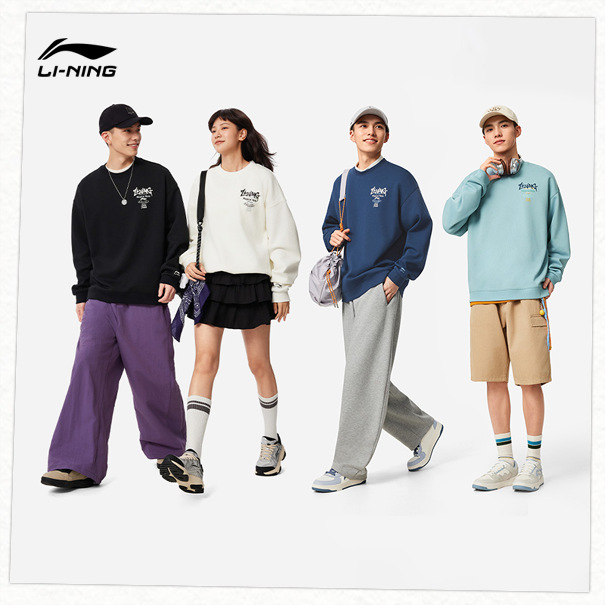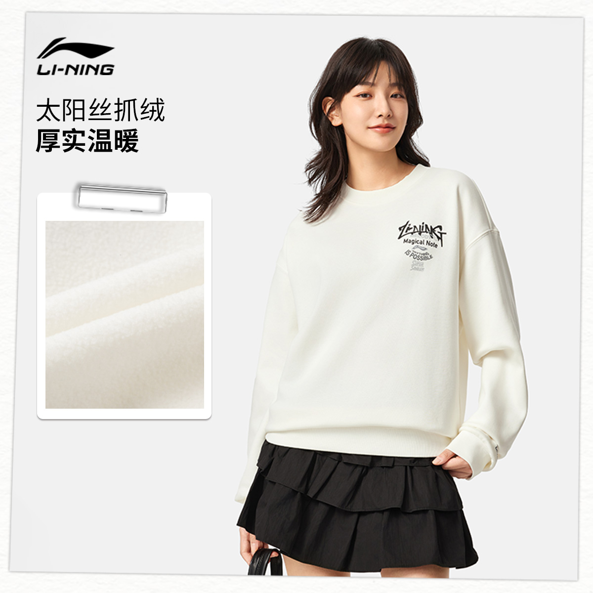 情侣上衣套头保暖长袖 2025新款 休闲女运动服 秋季 李宁加绒卫衣男士