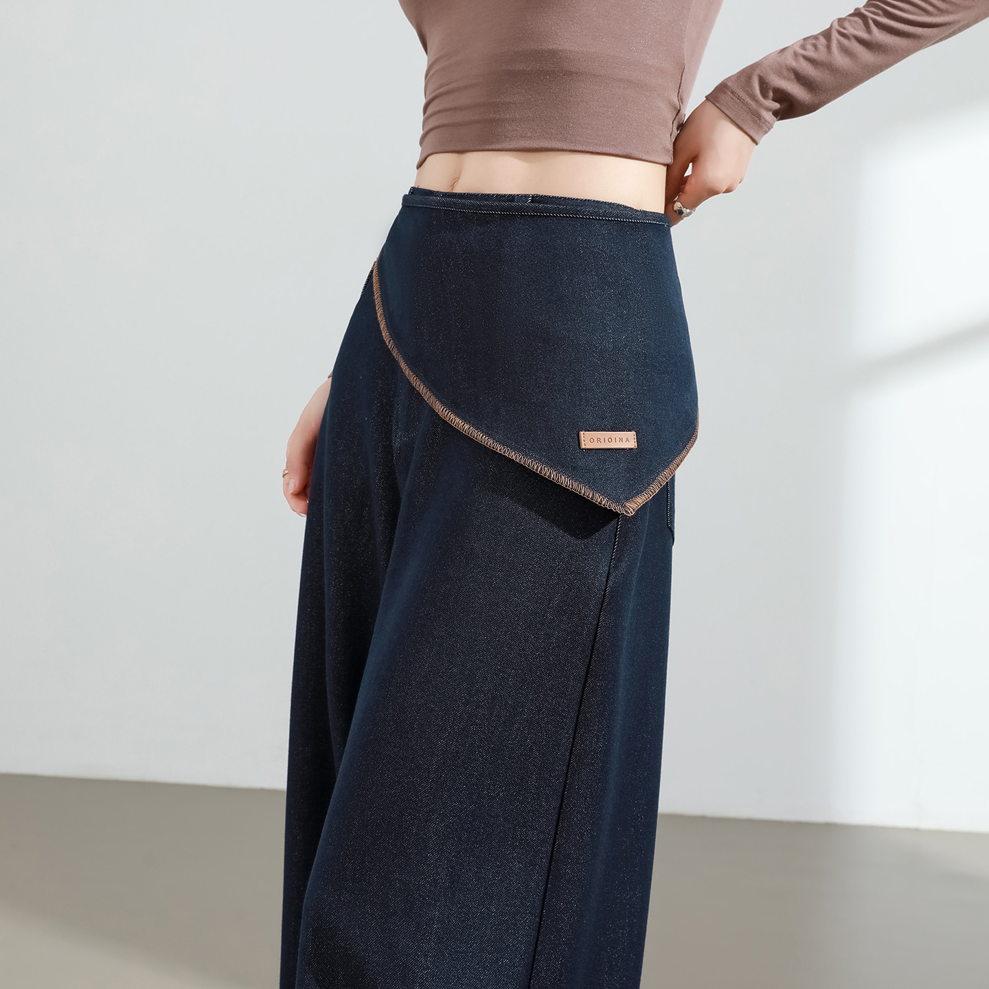 子 高腰宽松垂感慵懒松弛感拖地裤 深蓝色阔腿牛仔裤 女秋冬2025新款