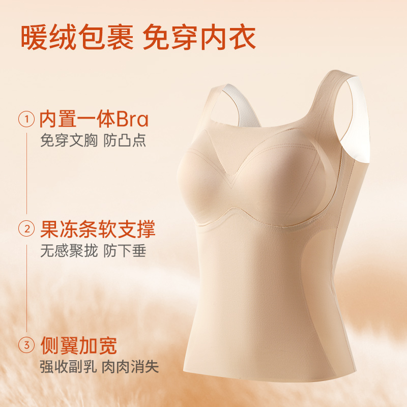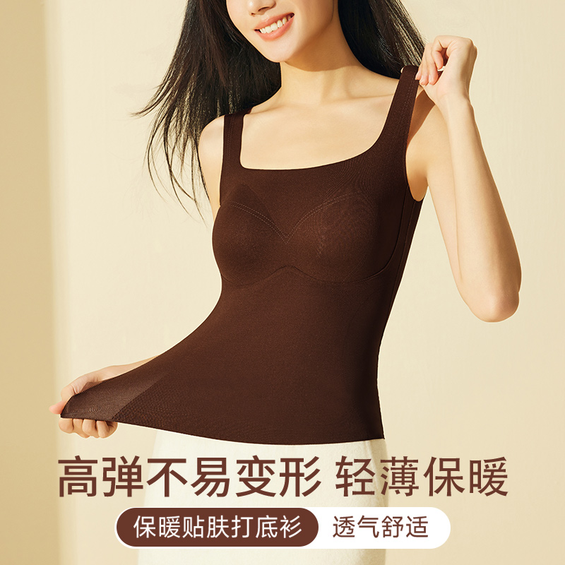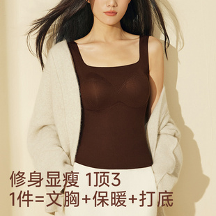 婷美显瘦保暖背心女2025新款 带胸垫10A抑菌免穿文胸肤色打底内衣