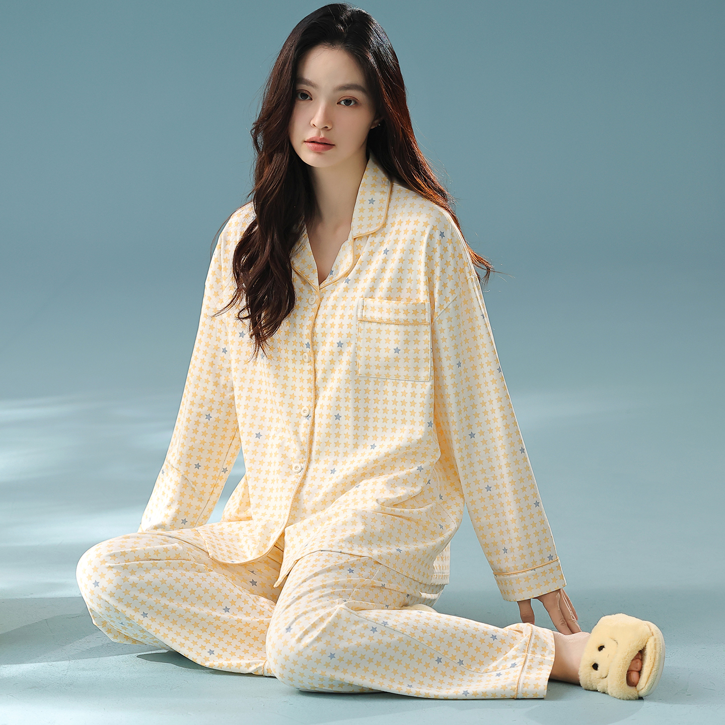 长袖 大码 长裤 甜美女款 抗菌家居服可外穿 套装 芬腾女睡衣纯棉春秋季