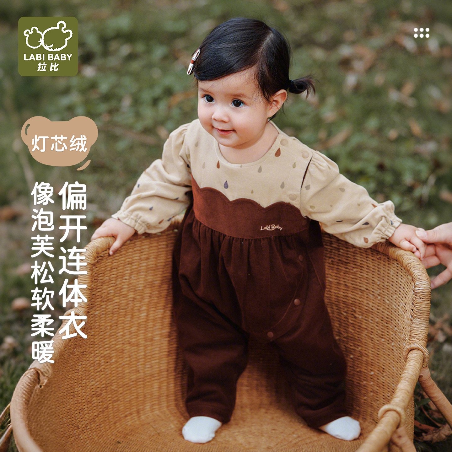 拉比婴儿偏开连体衣长袖 灯芯绒柔软保暖女宝宝新生儿秋冬哈衣爬服