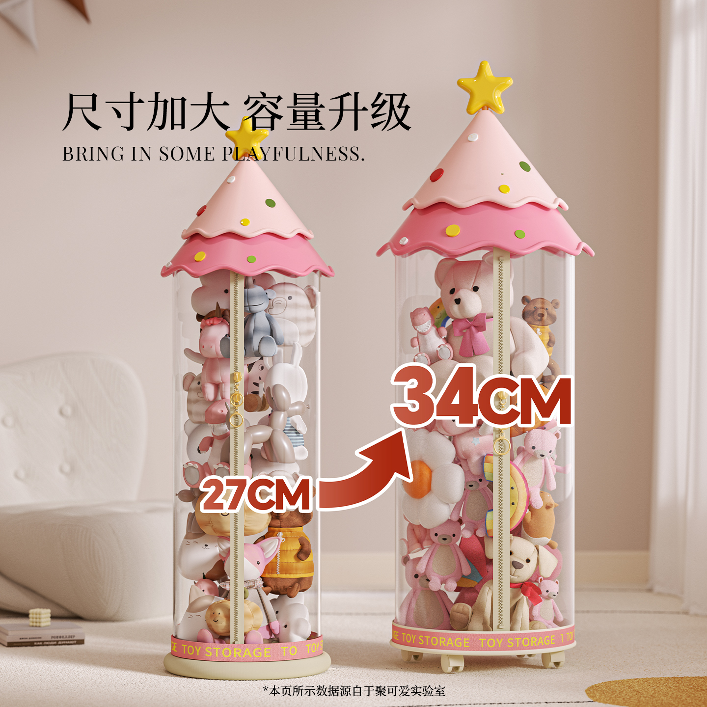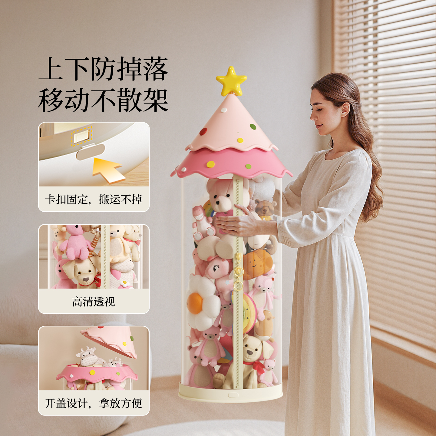 创意公仔防尘筒 毛绒玩具整理筒拉链款 娃娃收纳桶大直径新款 家用装
