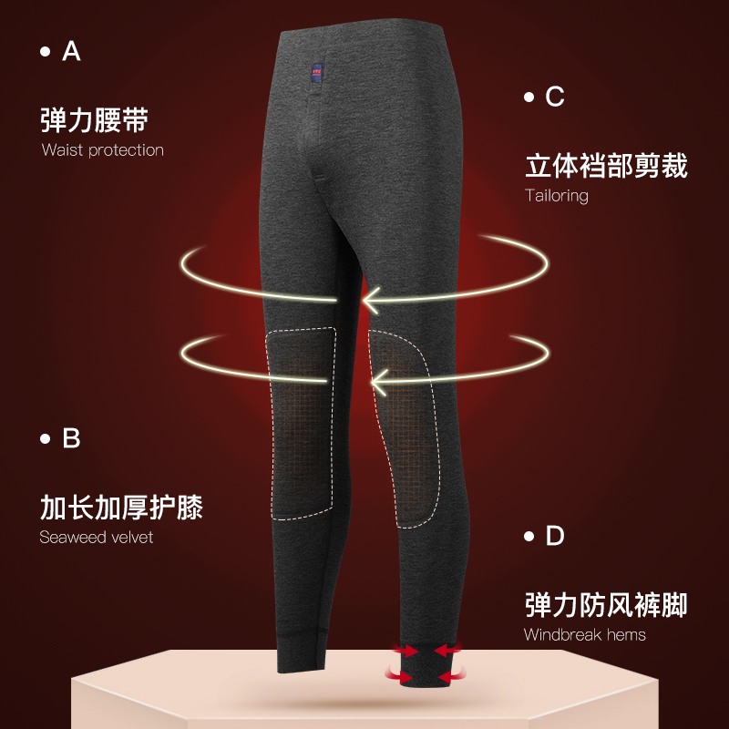 男款 雅鹿德绒羊毛保暖裤 绒裤 加绒加厚发热高腰护膝裤 秋冬防寒 男士