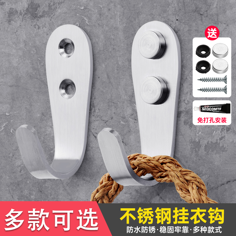 不锈钢免打孔挂钩强力承重粘胶挂衣钩子厨房浴室门后粘贴壁挂粘钩