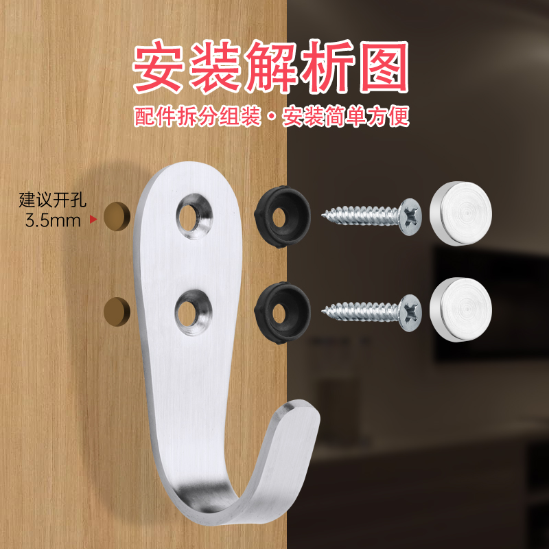 不锈钢挂钩强力承重粘胶挂衣钩子厨房墙壁免打孔粘钩门后壁挂免钉