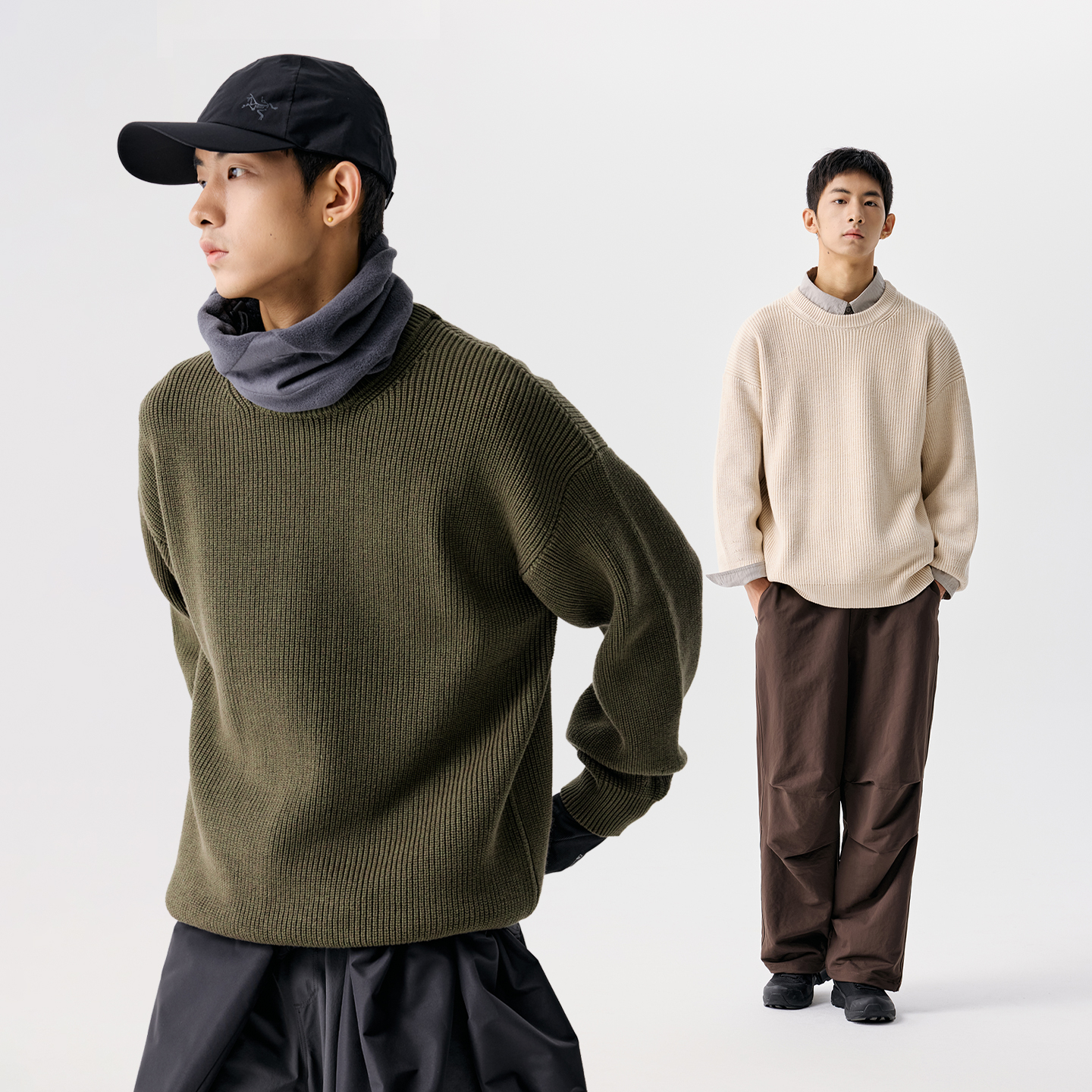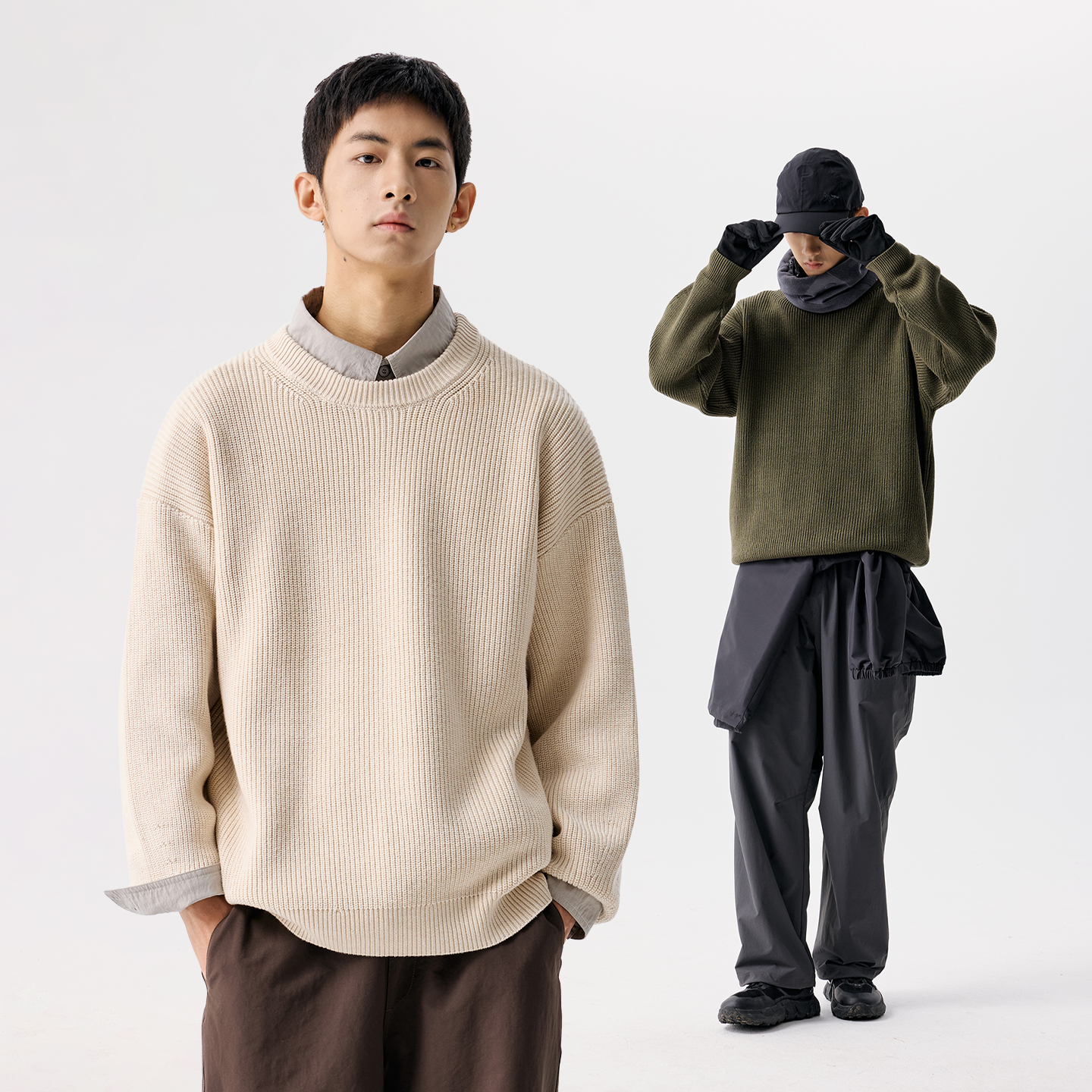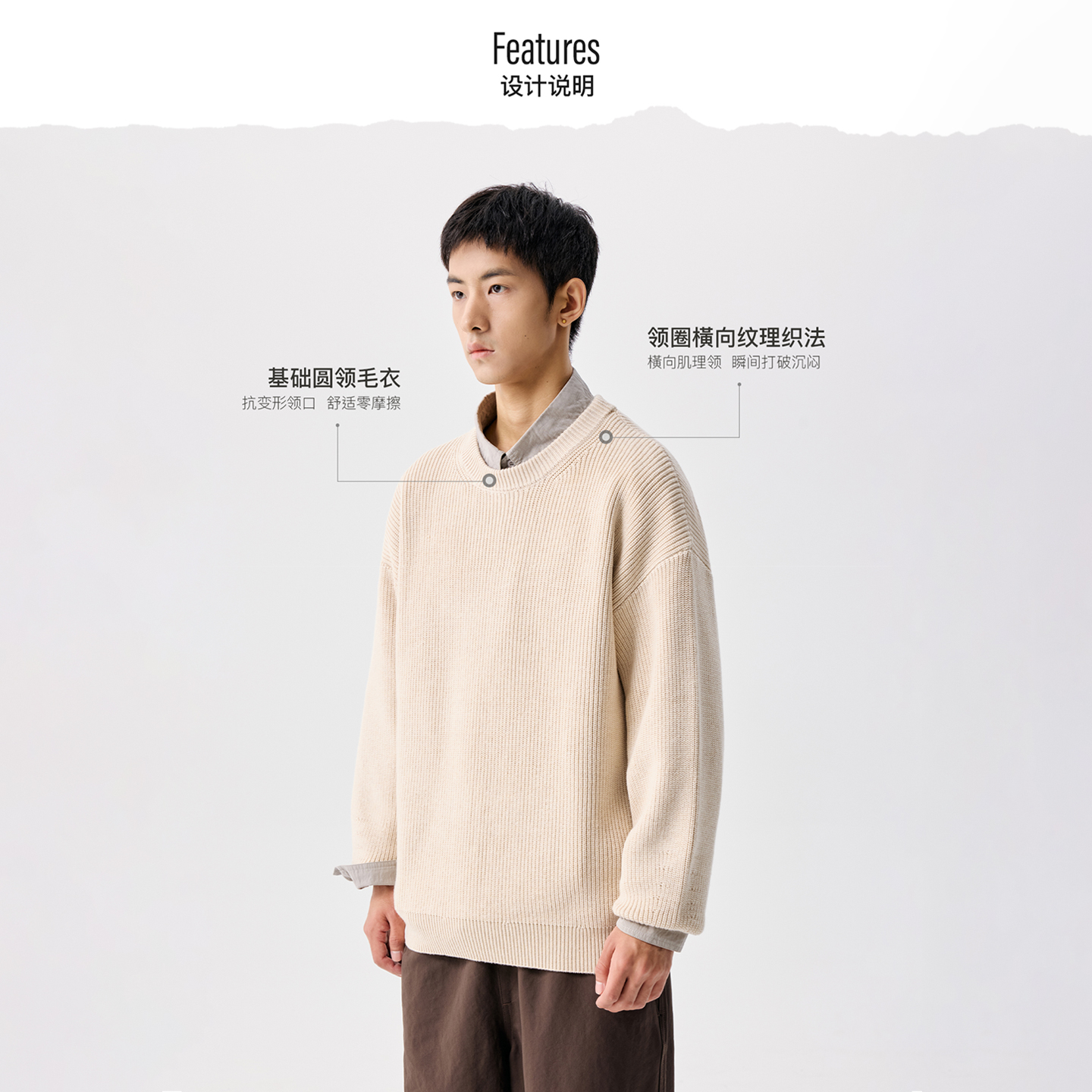 差异织法纹理针织衫 BENPANDA 2025秋冬纯色圆领毛衣男款