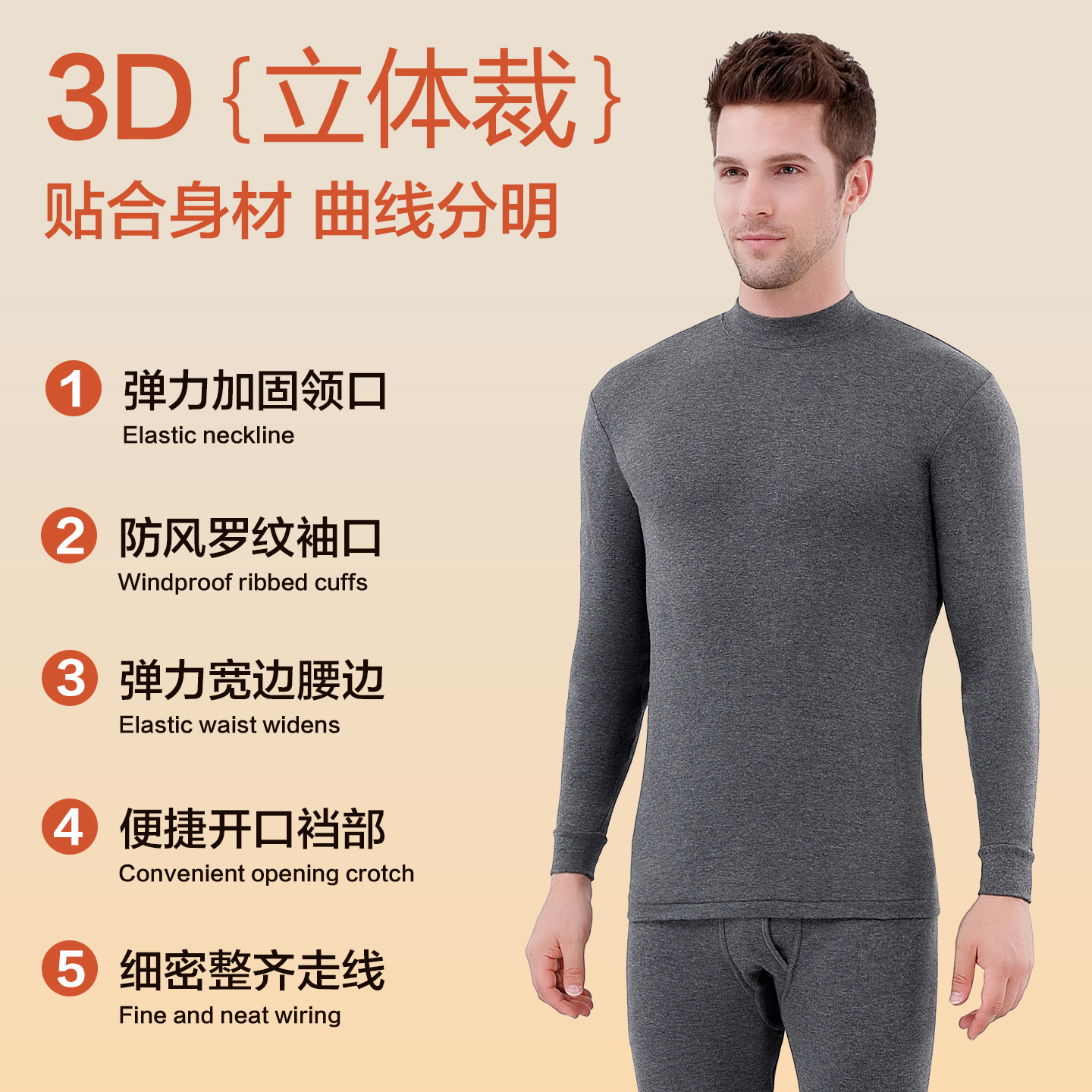 男士 保暖内衣套装 纯棉半高领2025新款 全棉毛衫 冬季 南极人秋衣秋裤