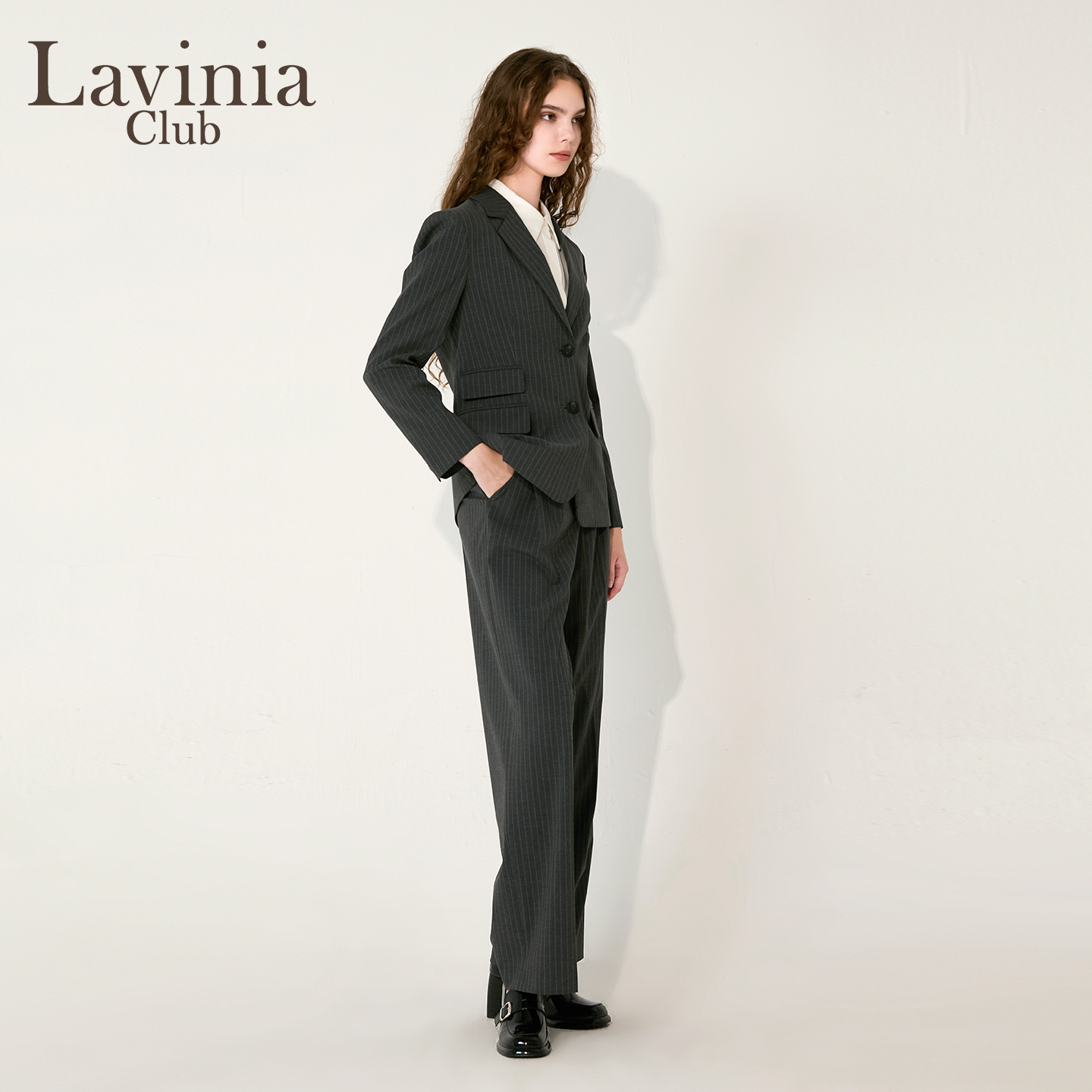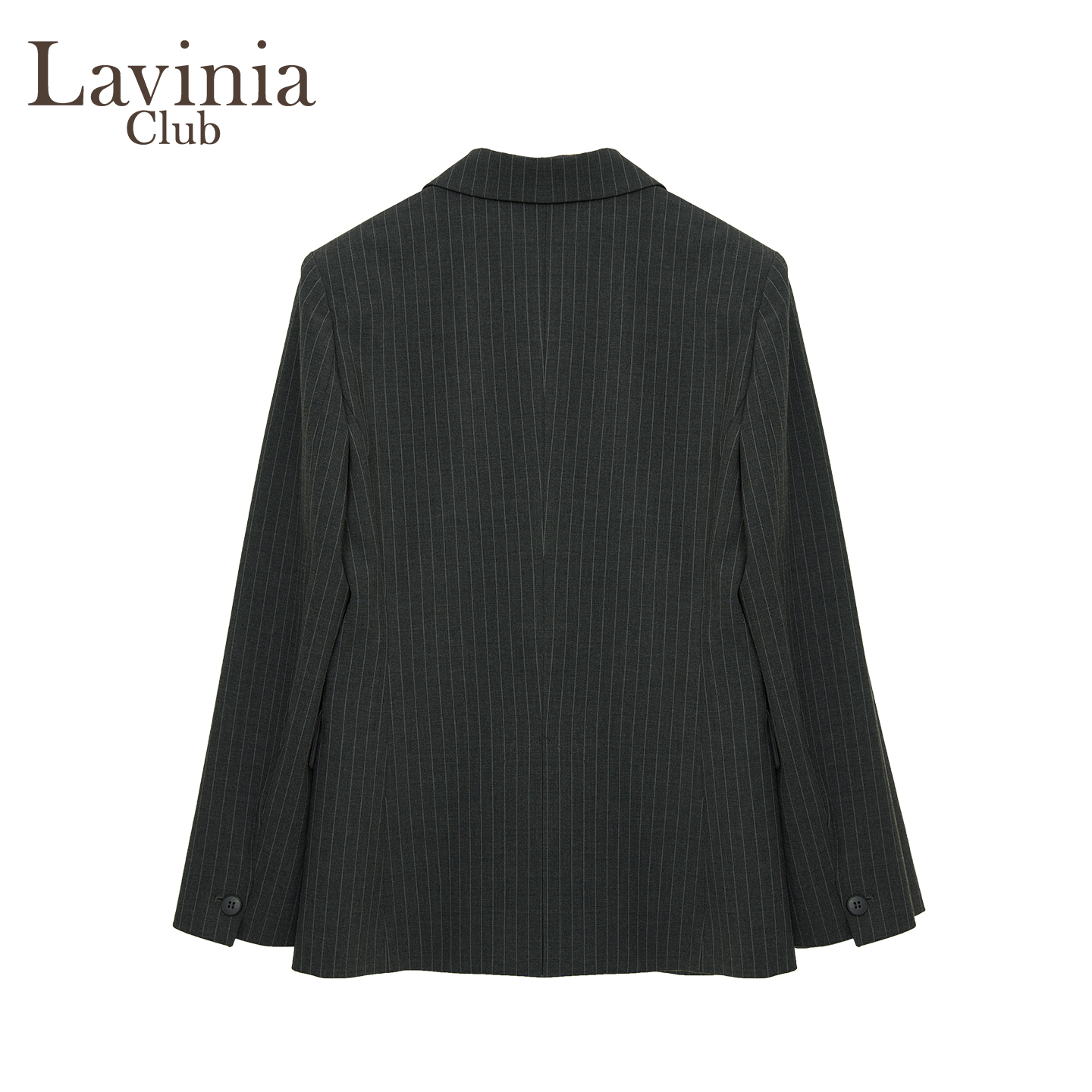 外套女B55W02 正肩廓形平驳领条纹西装 Lavinia格雷系2025秋季 新款