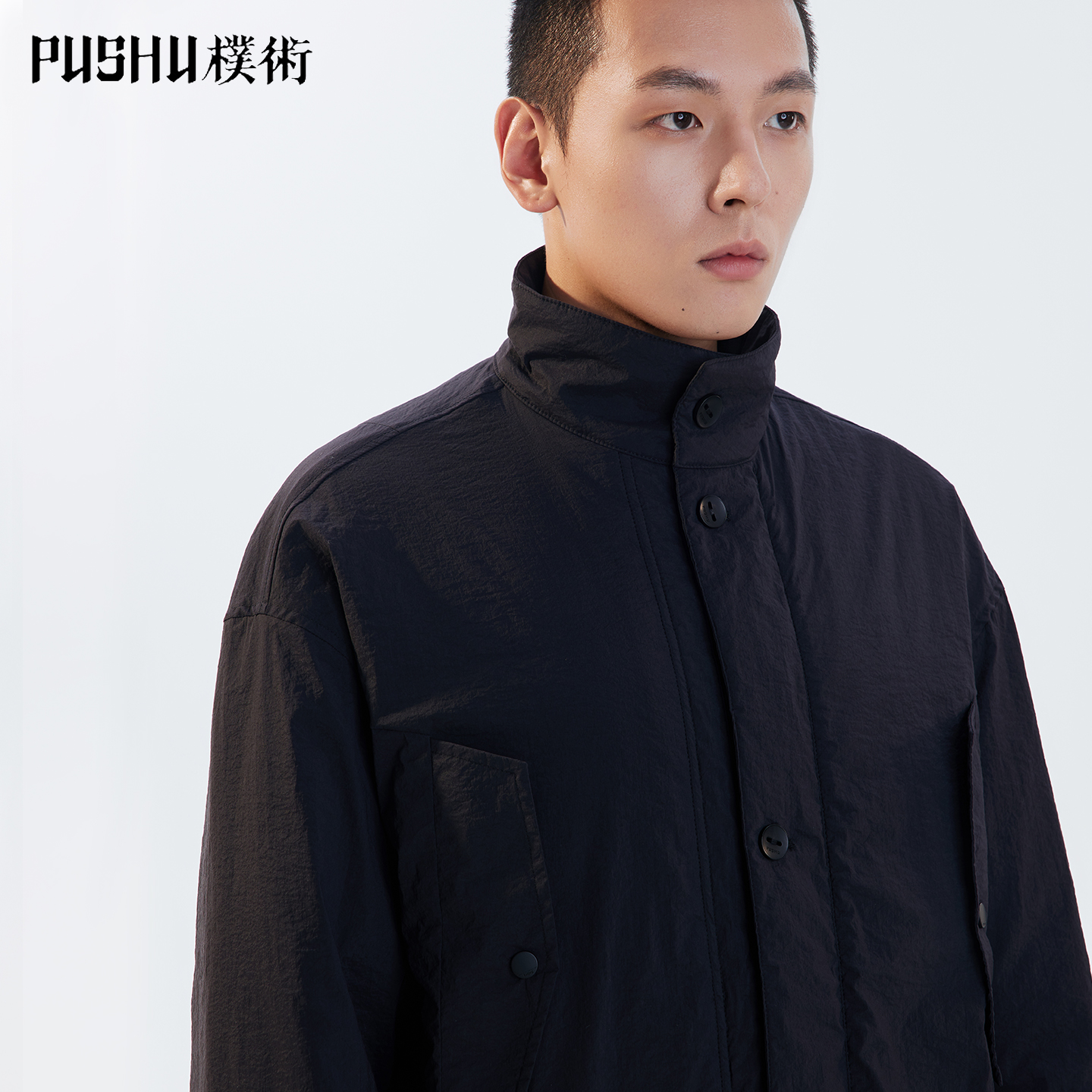宽松中长款 朴术男装 黑色防风商务出勤工装 新款 休闲风衣外套 春秋季