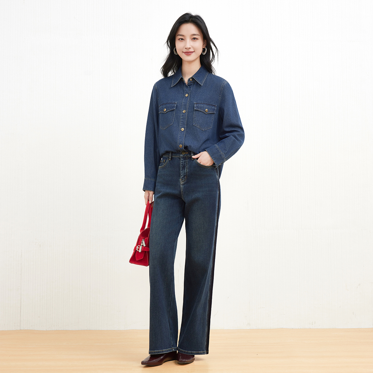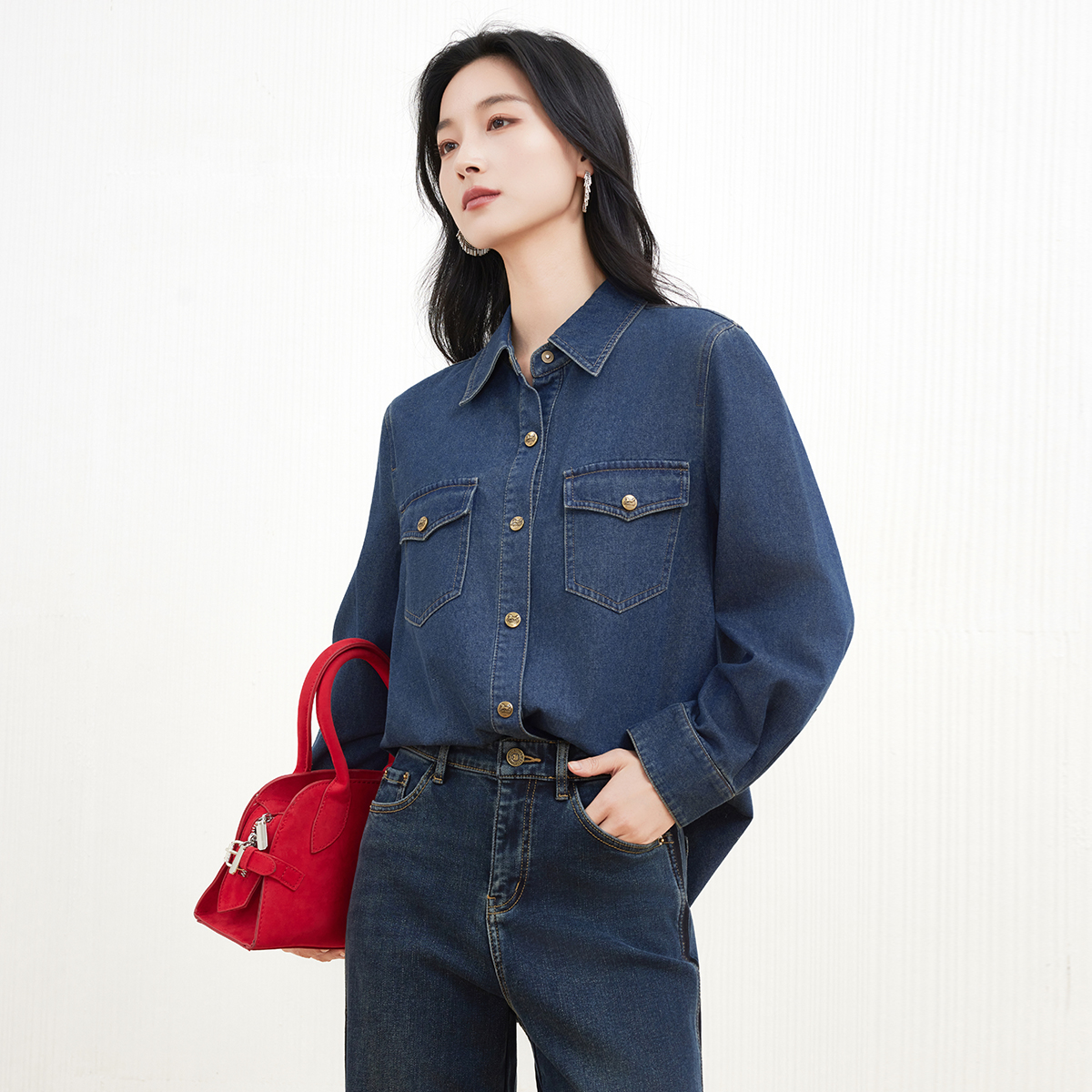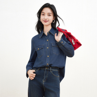 学院休闲简约棉美式 2025秋新款 上衣 牛仔衬衫 TeenieWeenie小熊女装