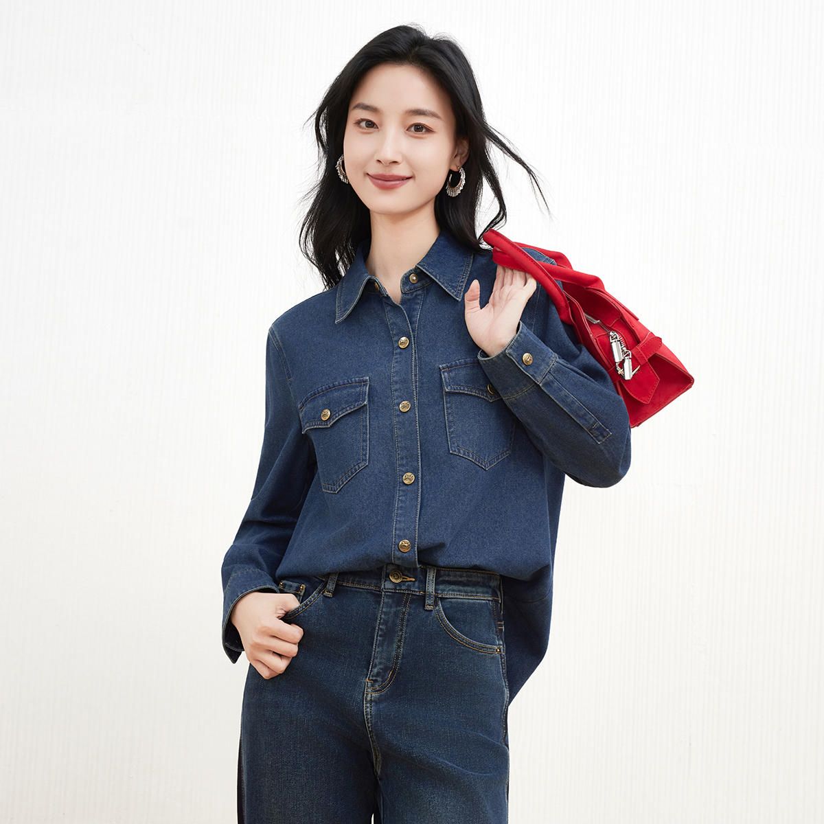 高智感长袖 蓝色通勤衬衫 TeenieWeenie小熊秋季 衬衣 赵露思同款