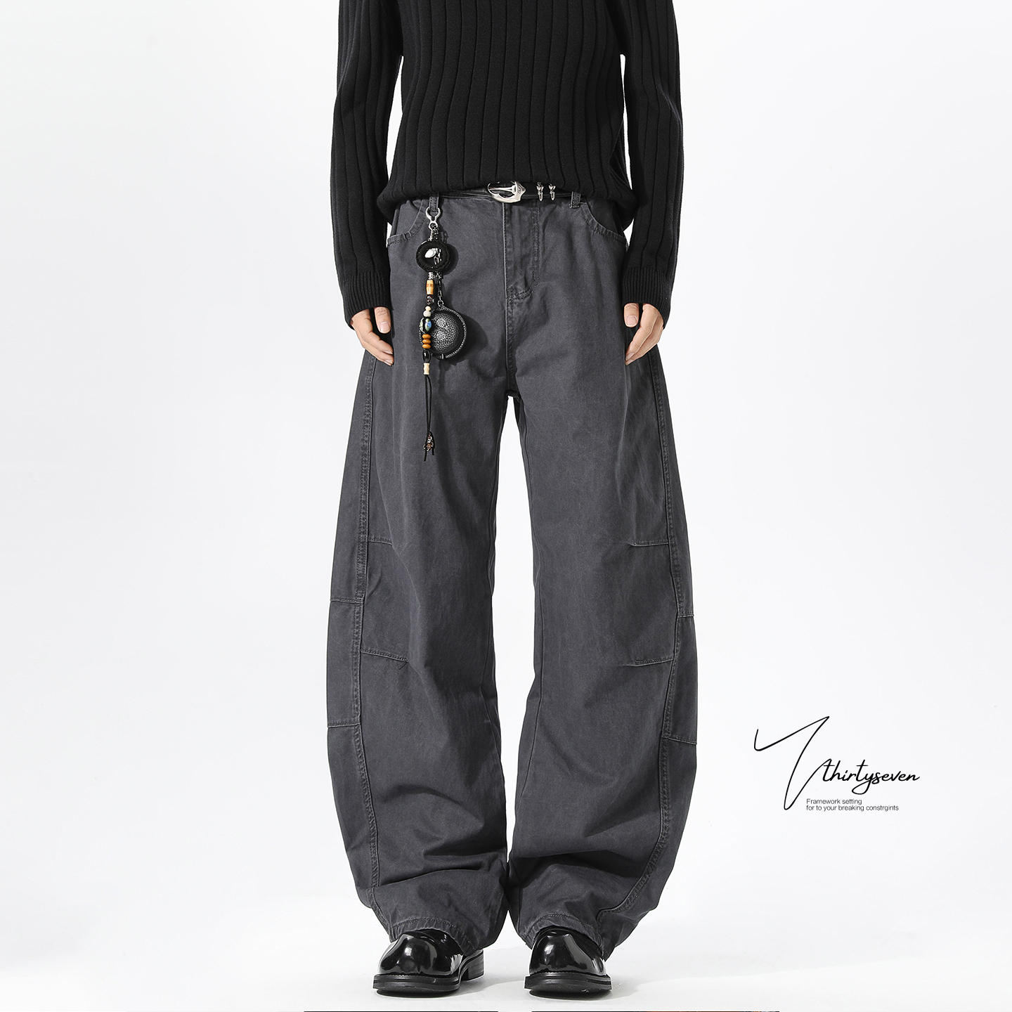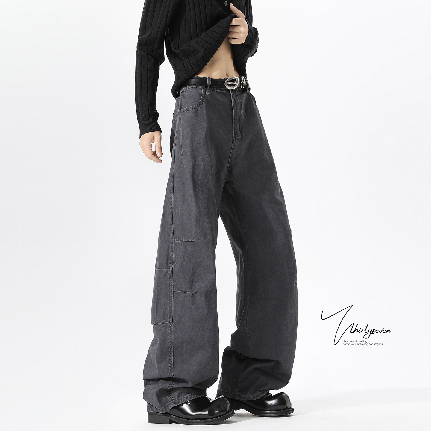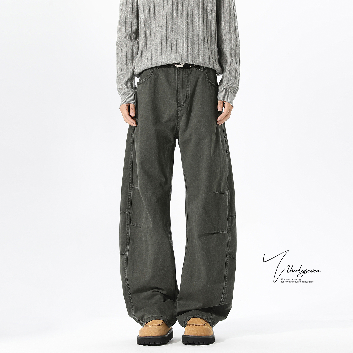 复古褶皱弯刀休闲裤 cleanfit直筒裤 男秋季 裤 高街解构工装 V37美式