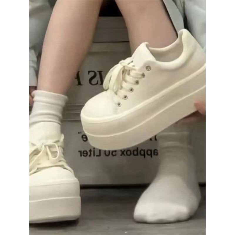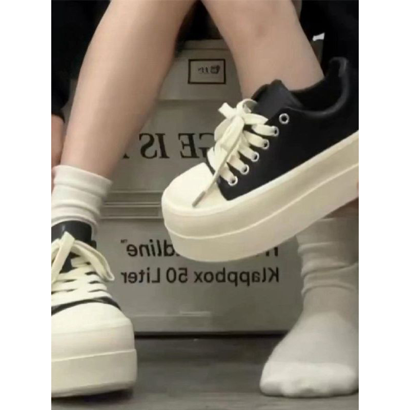 运动小白鞋 女ins潮流百搭休闲鞋 子圆头 黑白色厚底大头滑板鞋 新款
