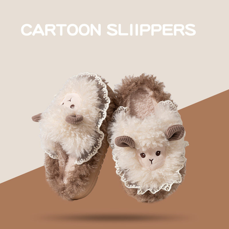 儿童棉拖鞋 卡通可爱小羊居家室内保暖加绒加厚女童棉拖亲子 秋冬季