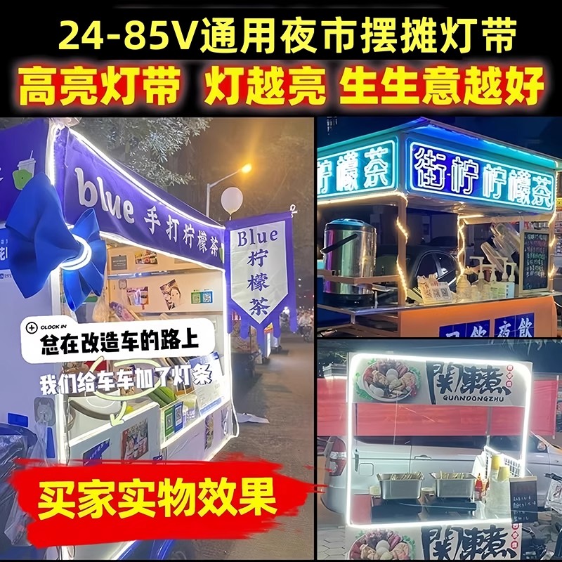 led夜市摆摊灯带超亮防水24 85v三轮电瓶车低压户外自粘氛围灯条